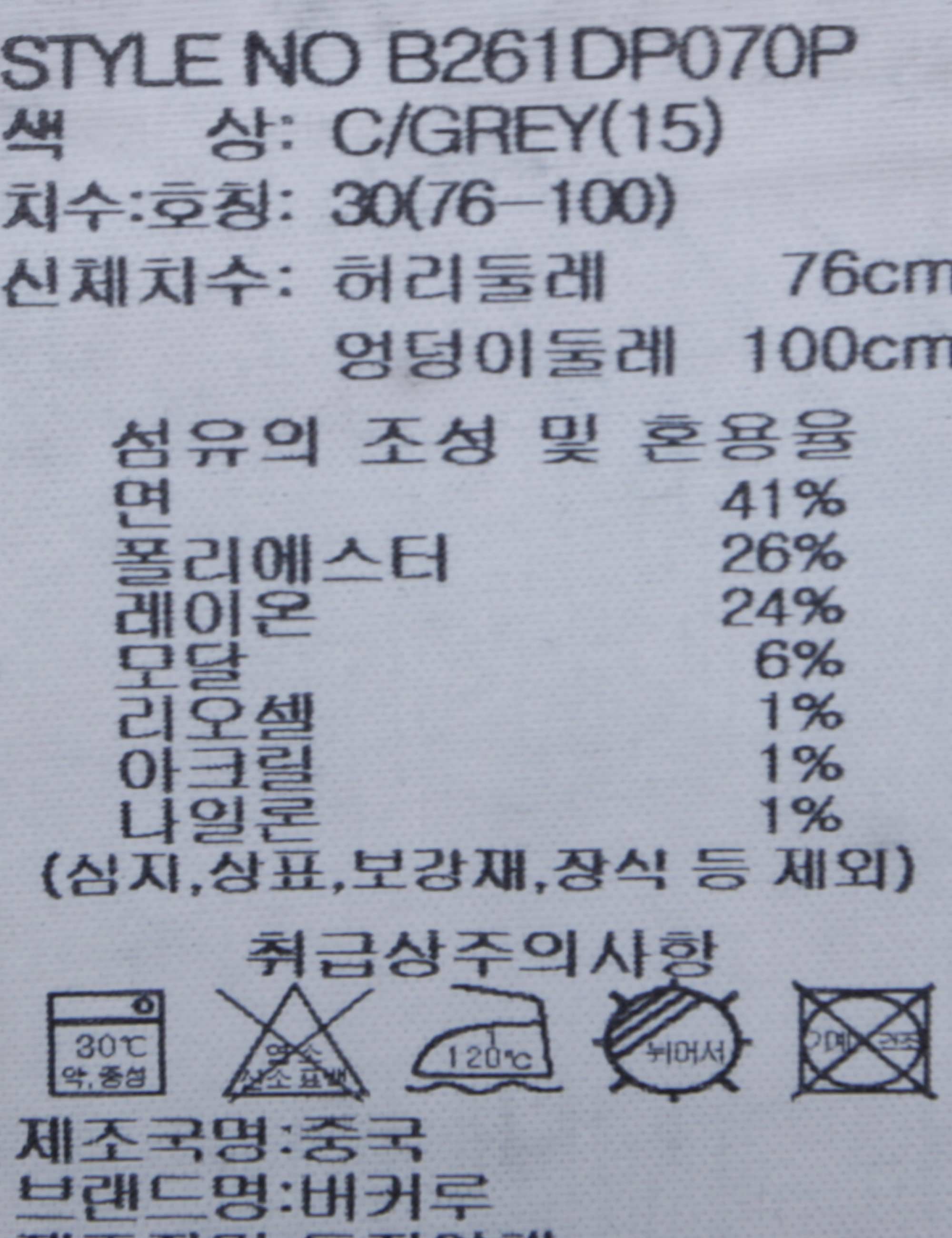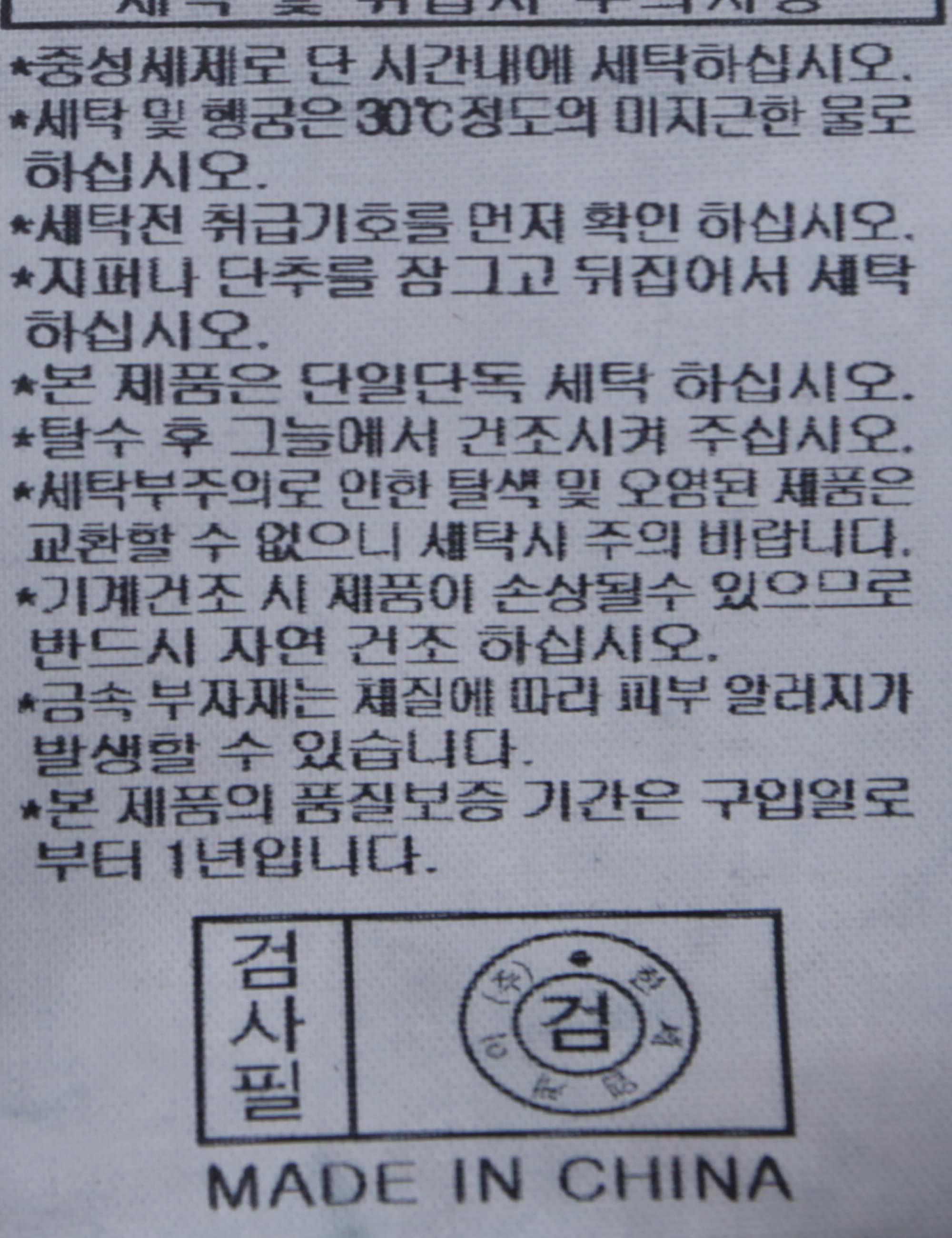 | 세탁방법 및 취급시 주의사항 | 중성세제로 단 시간내에 세탁하십시오.(케어라벨참고) |