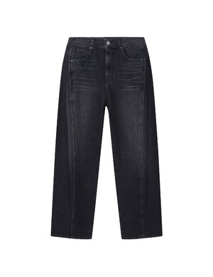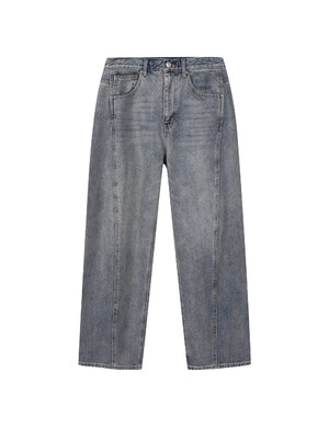 페이즐리 자카드와 가먼트 다잉으로 유니크한 빈티지 무드를 완성한 배럴핏 데님 팬츠