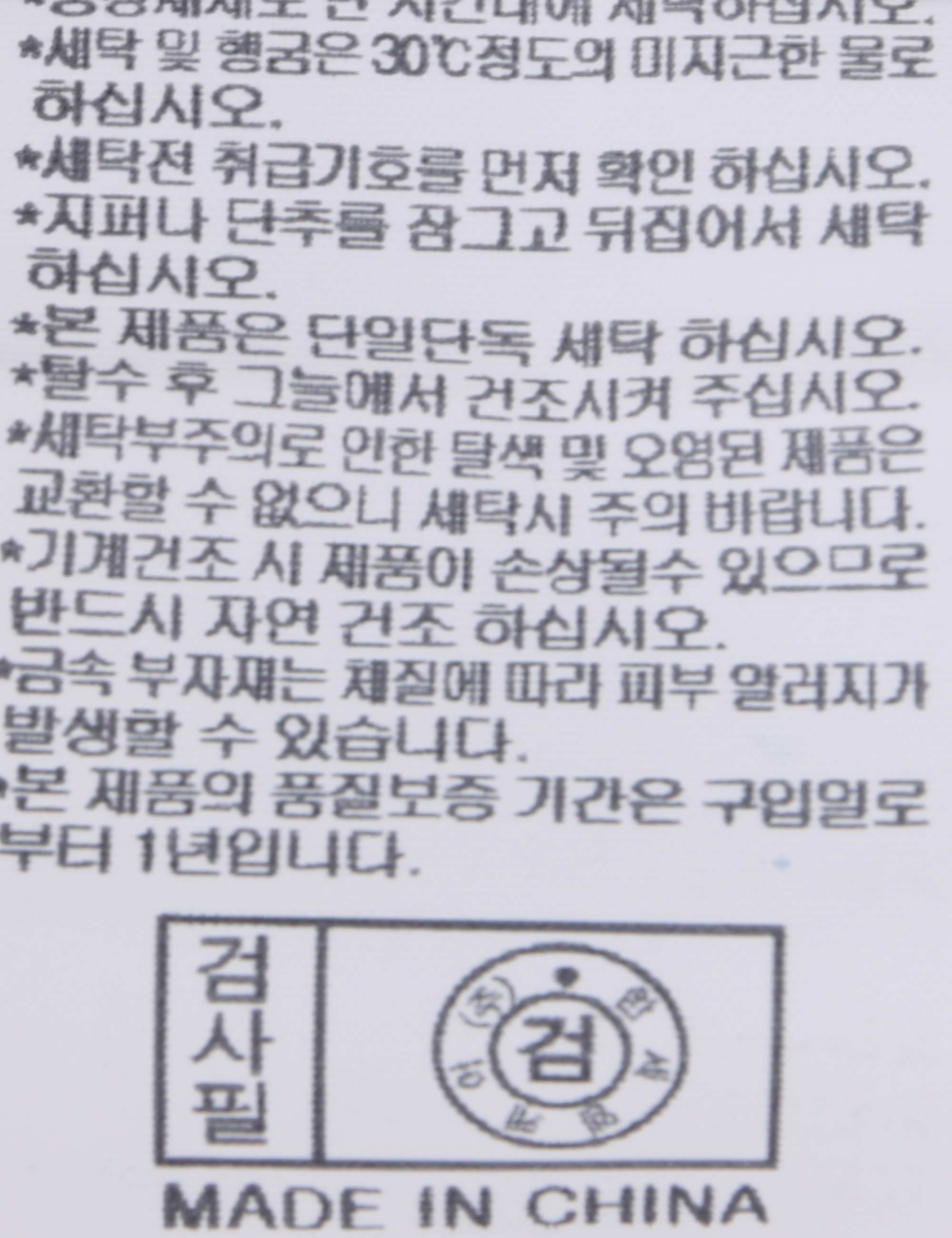 세탁방법 및 취급시 주의사항 중성세제로 단 시간내에 세탁하십시오.(케어라벨참고)