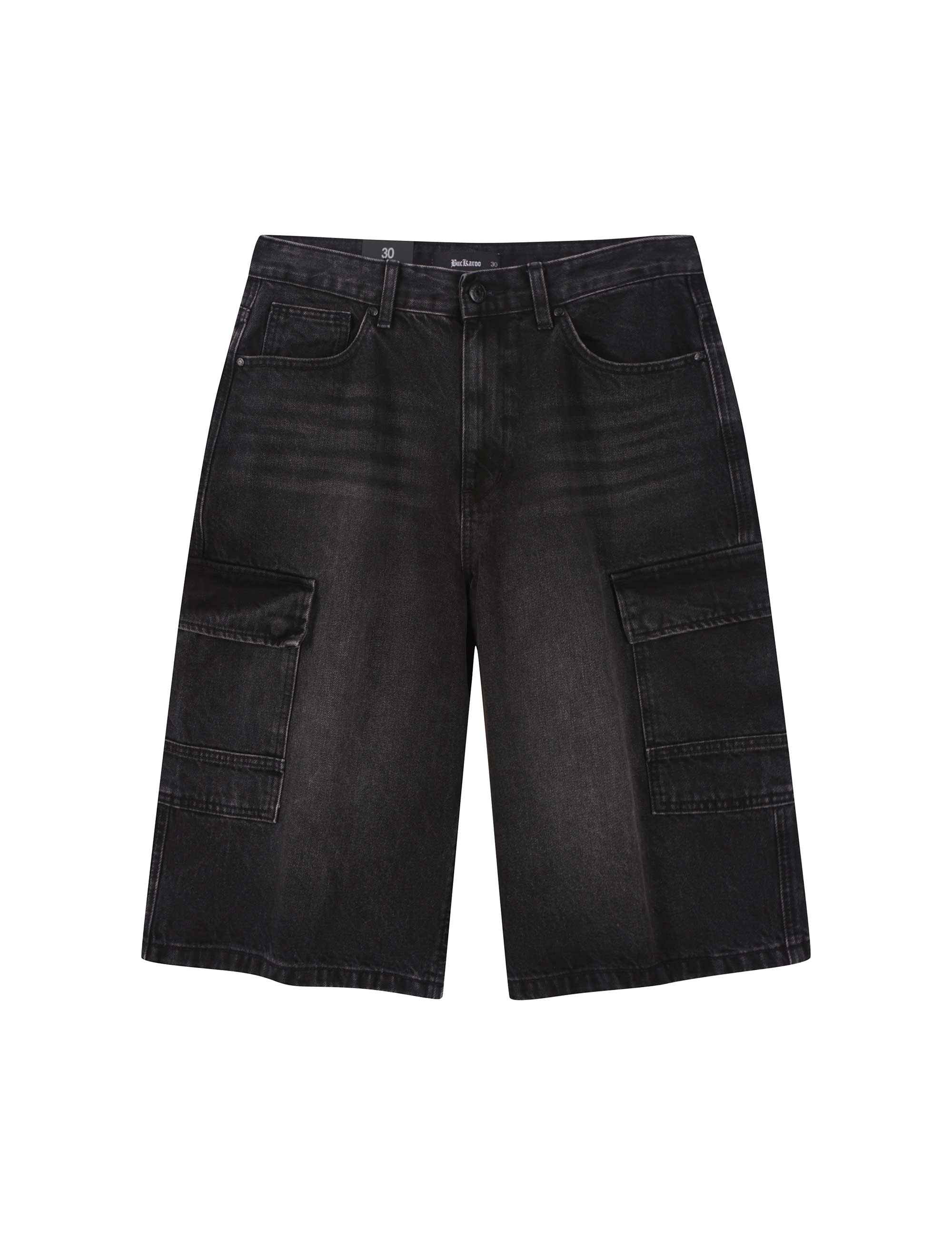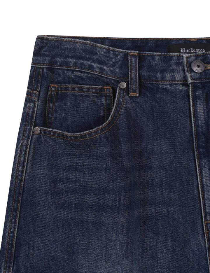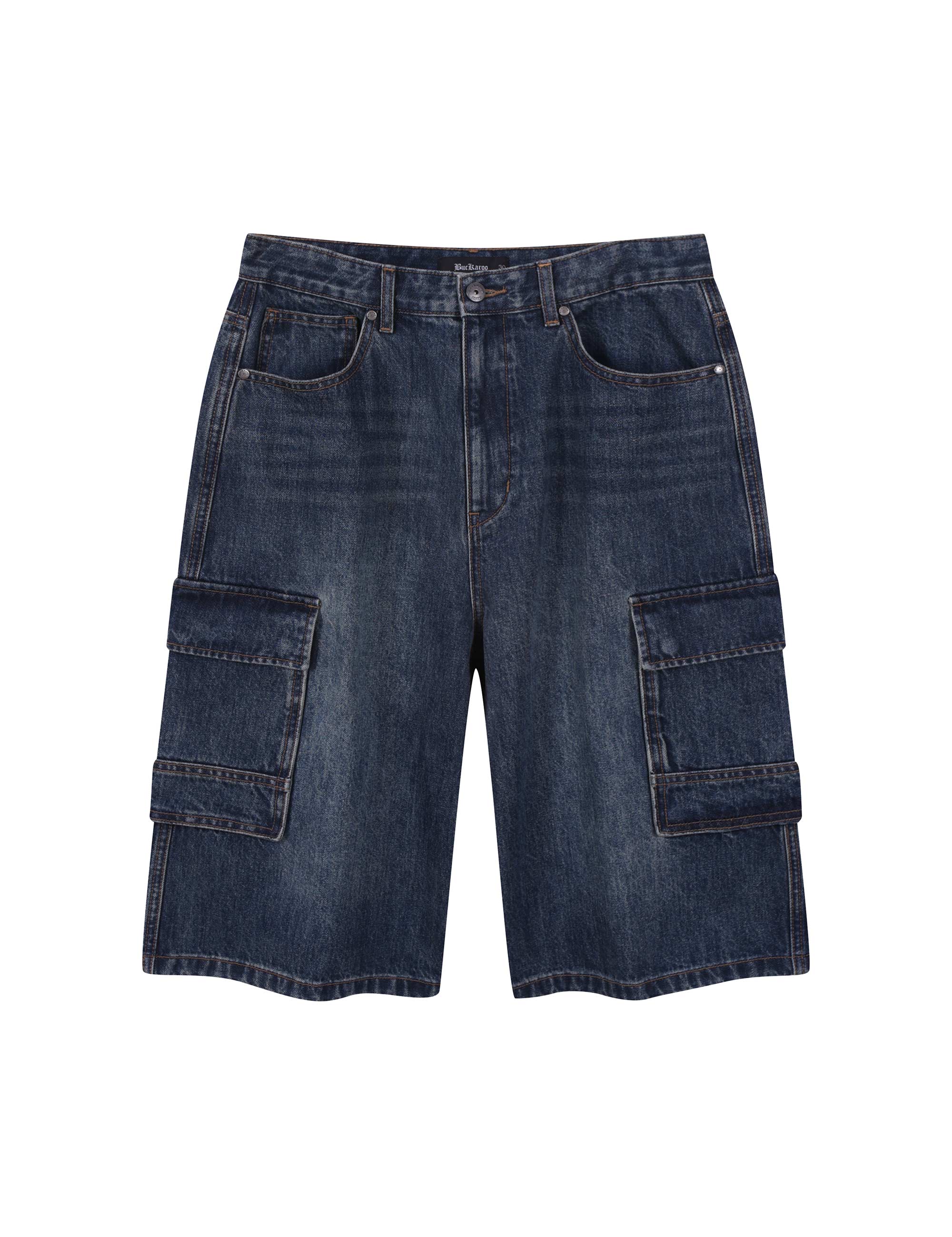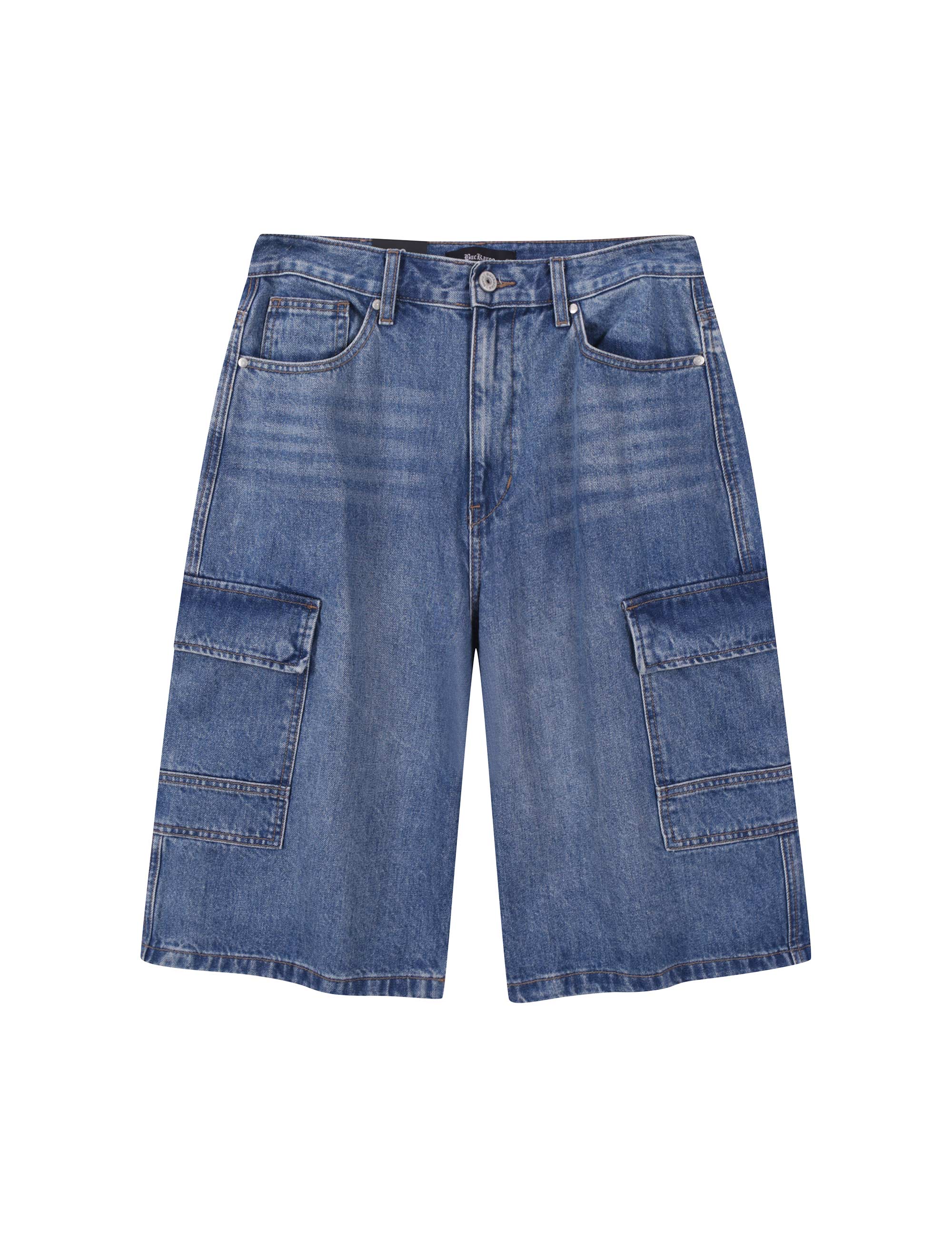 빈티지한 무드와 카고 디테일로 실용성을 더한 남성용 6부 와이드 데님 쇼츠