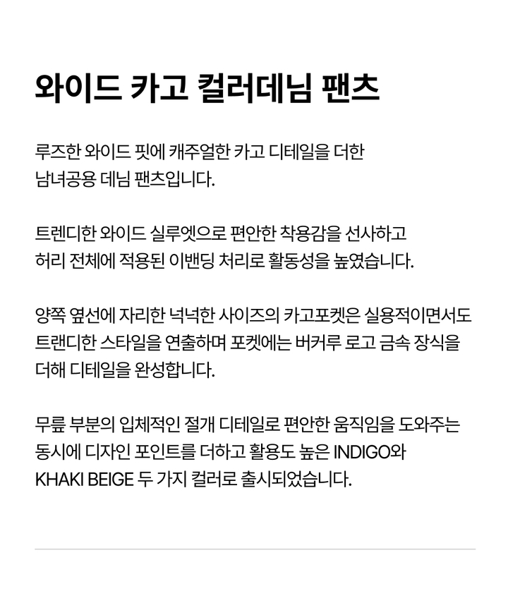 | 상품명 | 와이드 카고 컬러데님 팬츠(B265DP069P) |