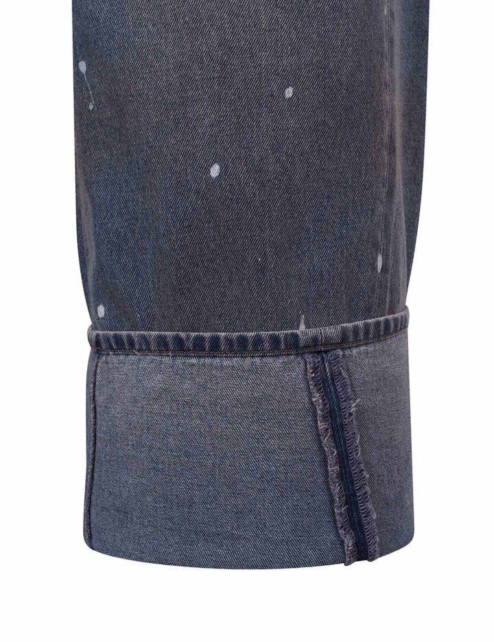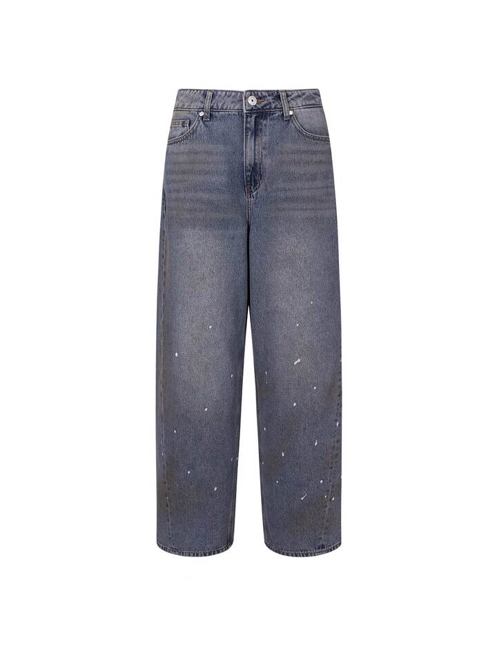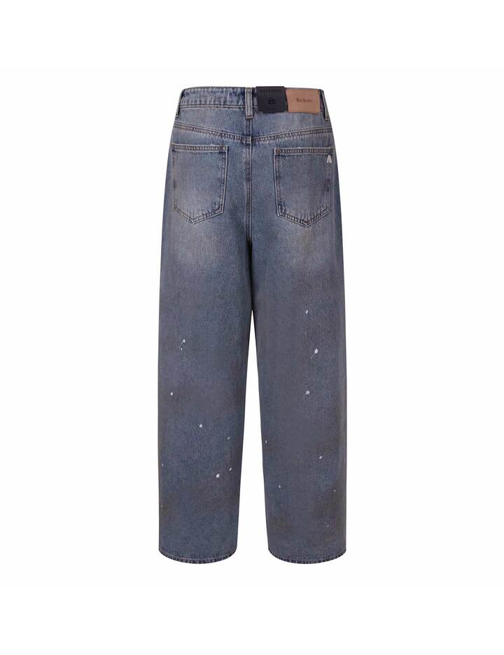 핸드브러쉬 워싱 위에 베이지 틴과 페인팅 디테일이 어우러져 깊이감 있는 빈티지 무드를 표현했으며, 기존 핏보다 더 와이드한 뉴핏으로 트렌디한 볼륨감을 강조했습니다.