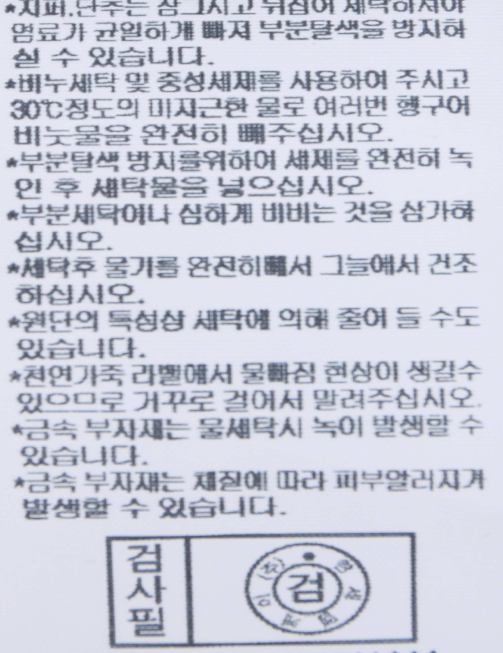 | 세탁방법 및 취급시 주의사항 | 본 제품은 손세탁 하십시오.(케어라벨참고) |