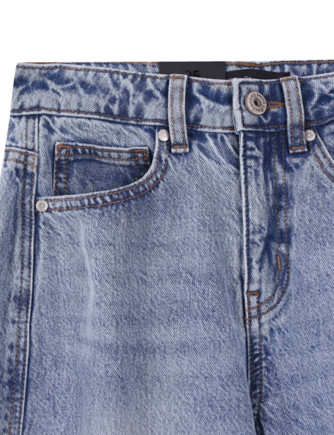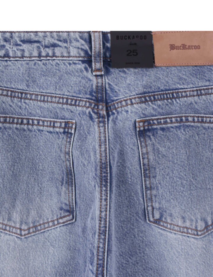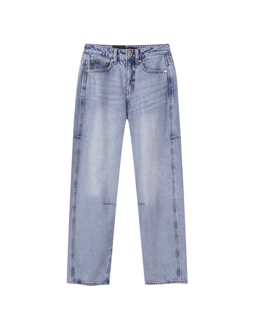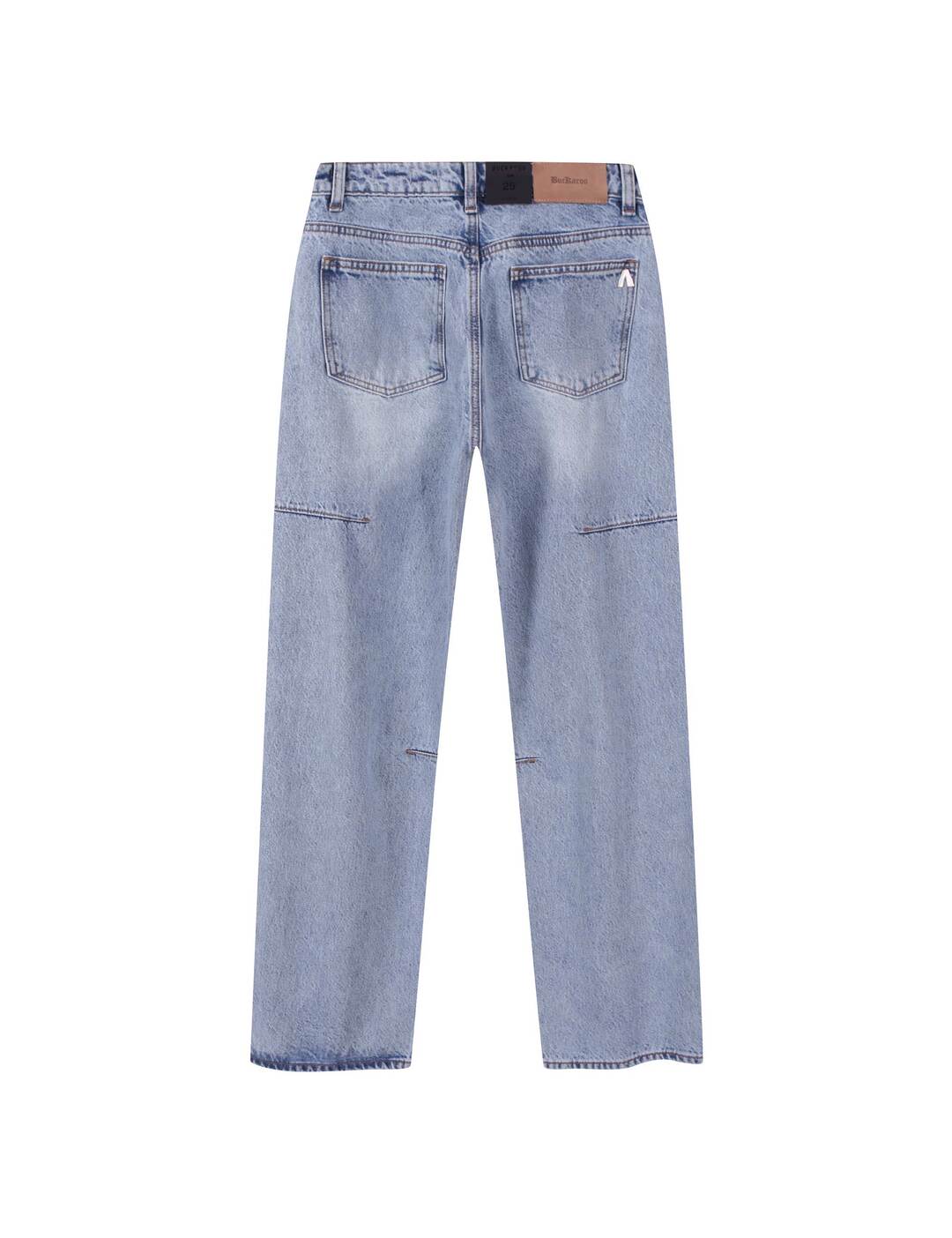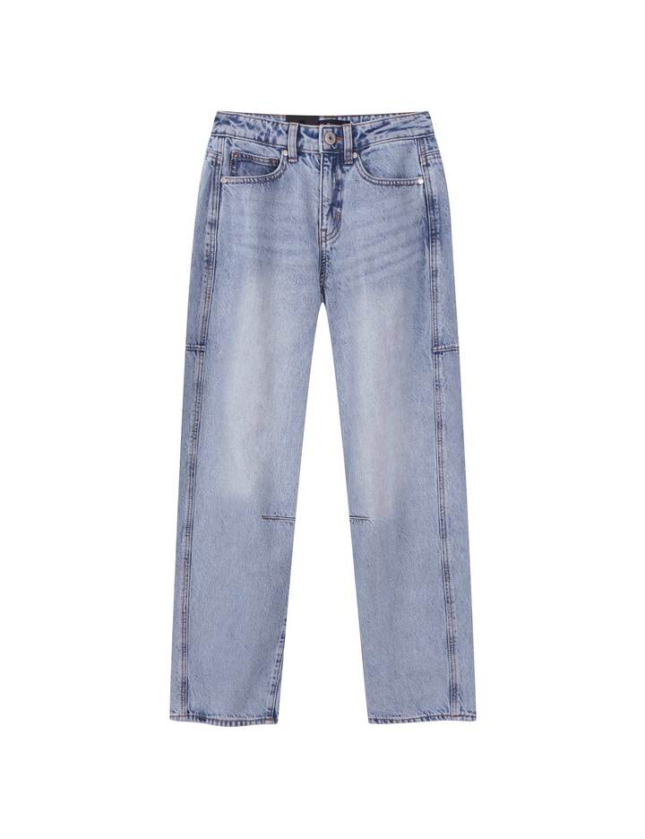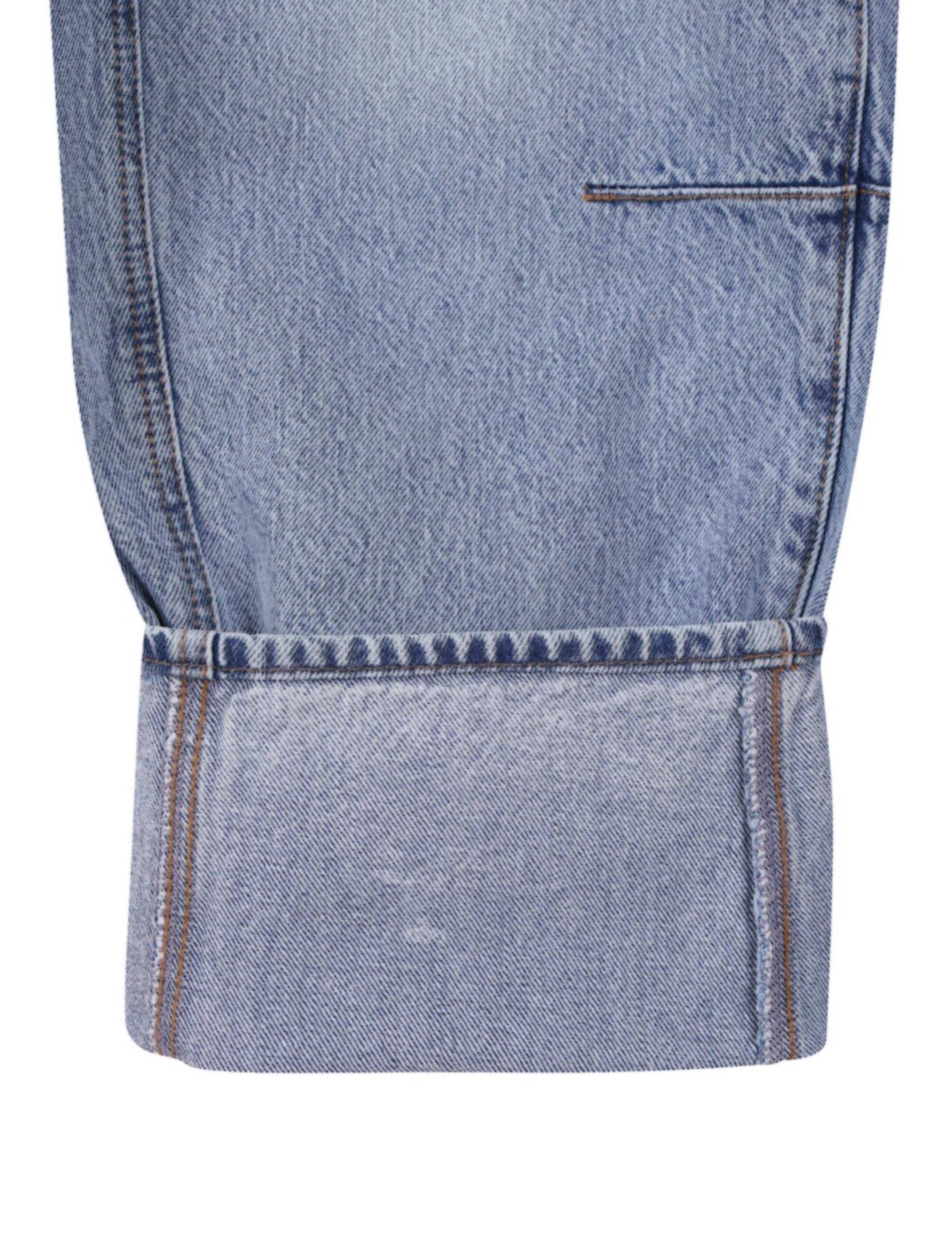 A1 힙과 무릎은 여유 있고 밑단은 좁아지는 입체적인 배럴 실루엣입니다.
