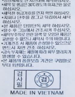 중성세제로 단 시간내에 세탁하십시오.(케어라벨참고) |