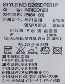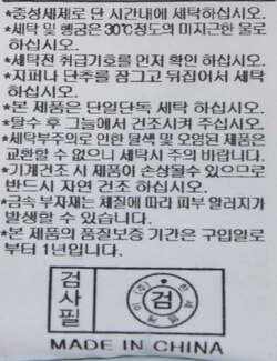 | 세탁방법 및 취급시 주의사항 | 중성세제로 단 시간내에 세탁하십시오.(케어라벨참고) |