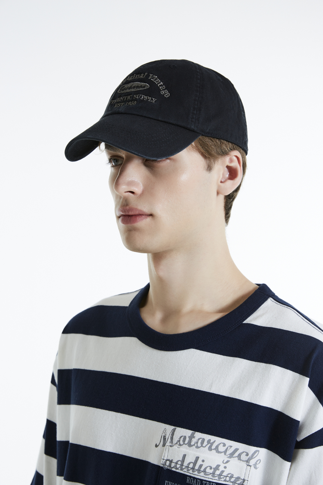 * 버커루의 아치형 아트웍 2도 자수를 활용한 데일리 볼캡