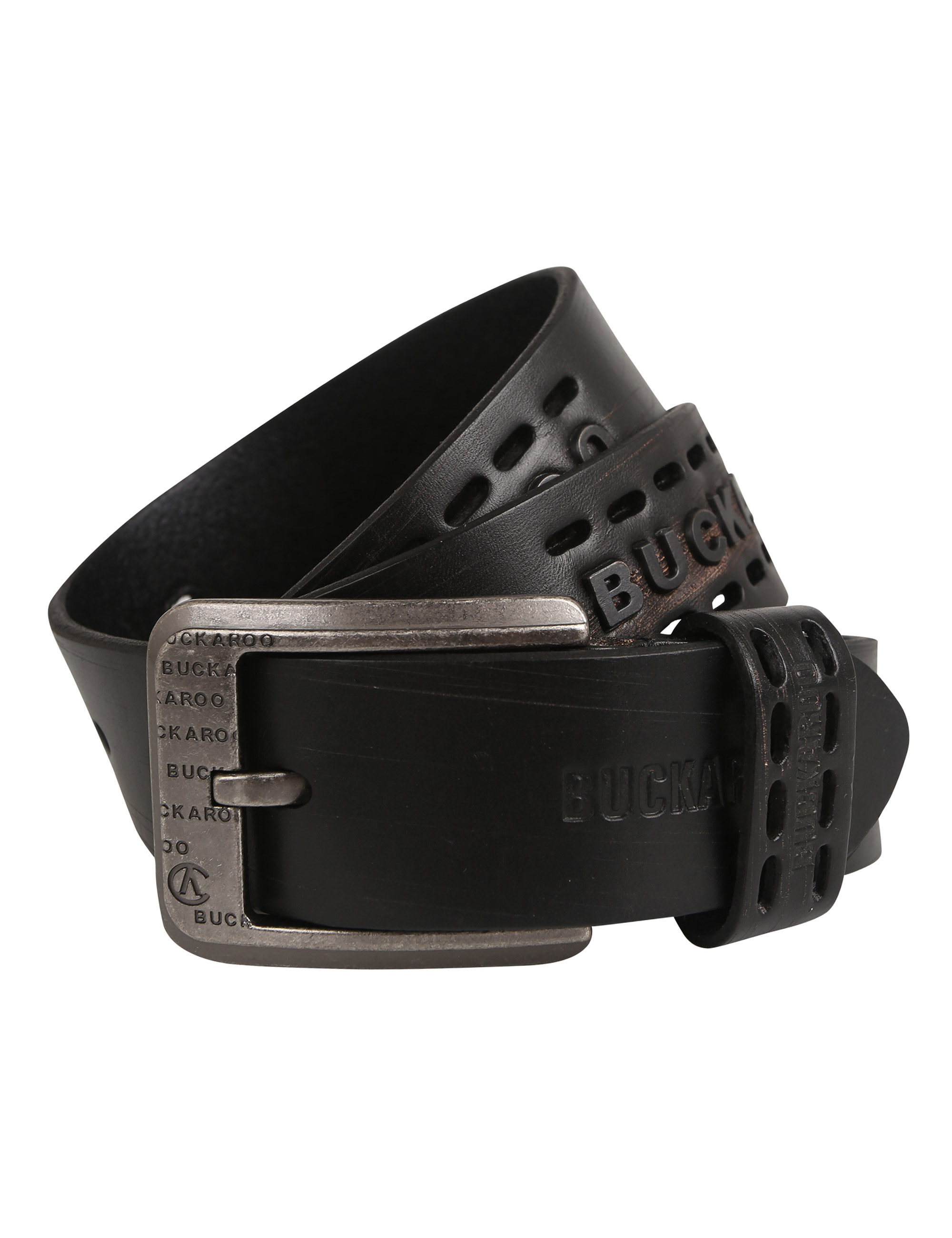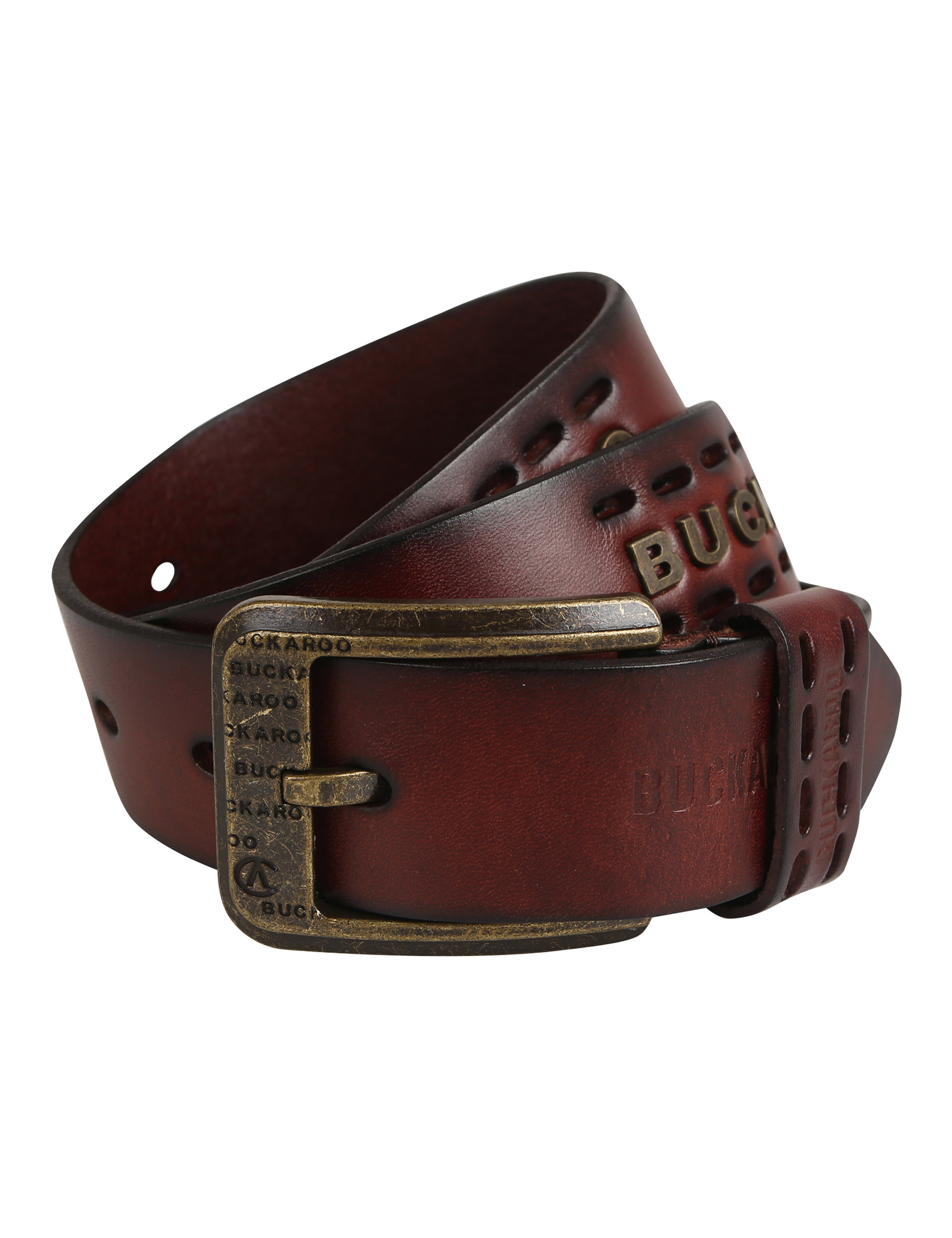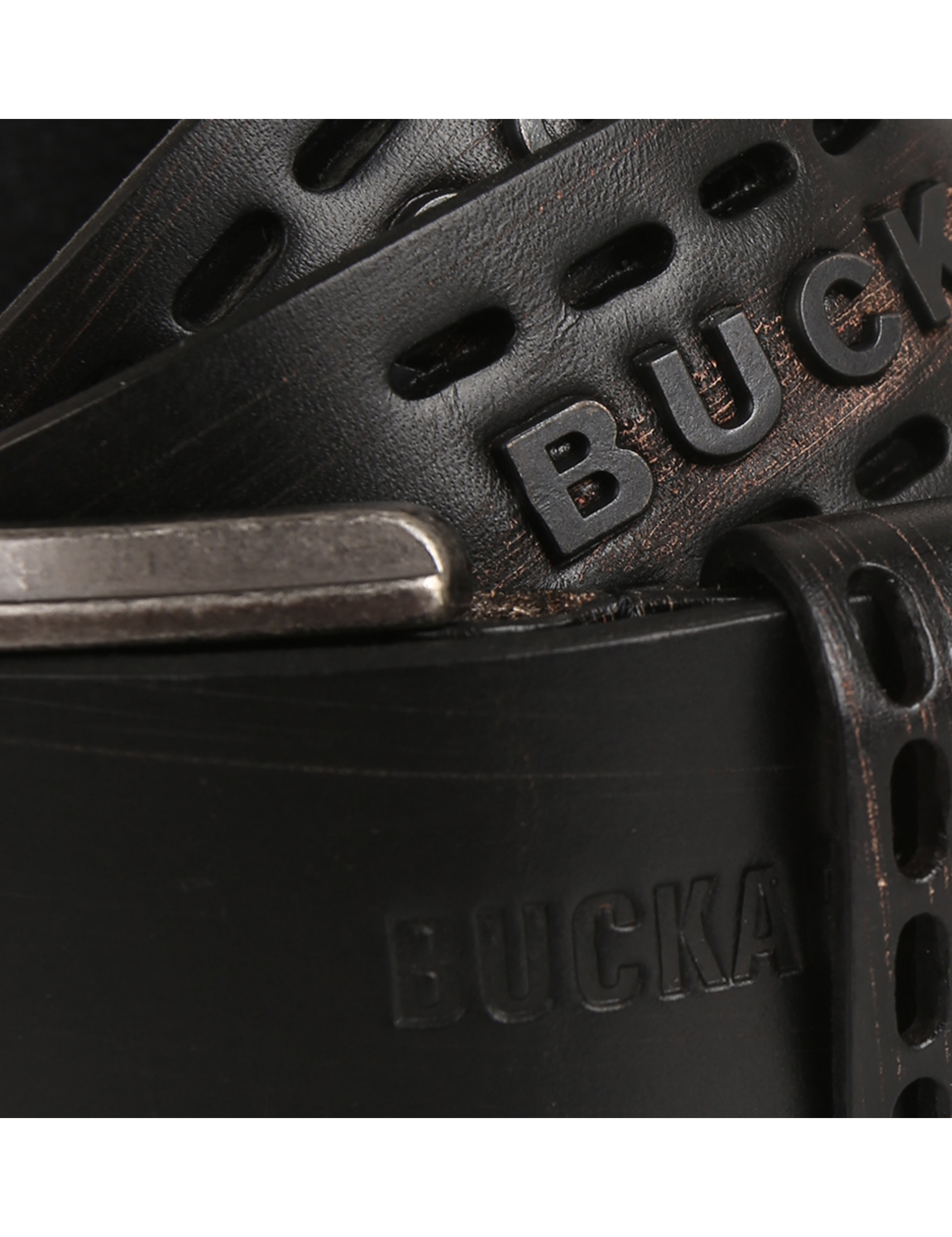 버커루 금속 로고 장식의 빈티지한 버커루 시그니쳐 벨트.