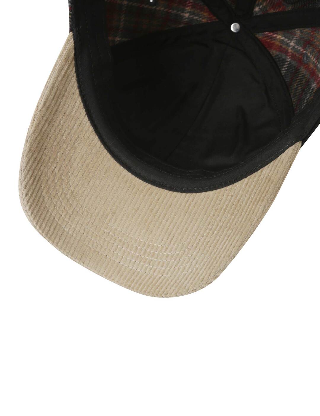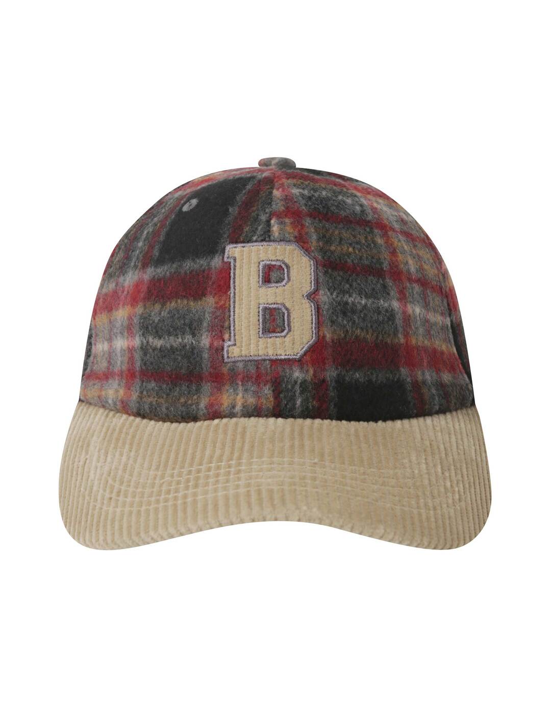*체크 원단과 코듀로이 원단을 배색이 들어간 빈티지 체크 원단 볼캡