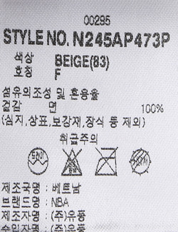 | 취급시 주의사항 | 본 제품은 반드시 드라이크리닝 하십시오.(세탁라벨참고) |
