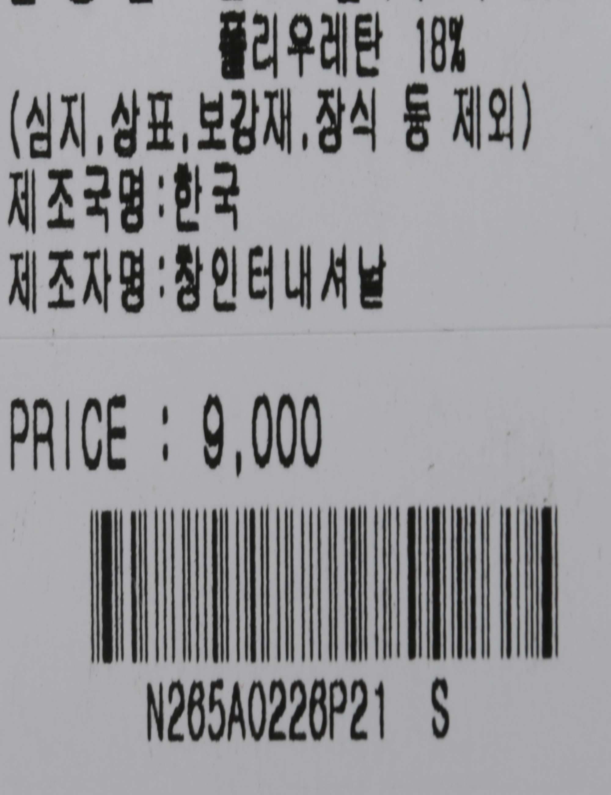 겉감(면 62%, 폴리에스터 20%, 폴리우레탄 18%): 면 혼방 소재로 흡습성이 좋고 신축성이 우수하여 편안한 착용감 제공