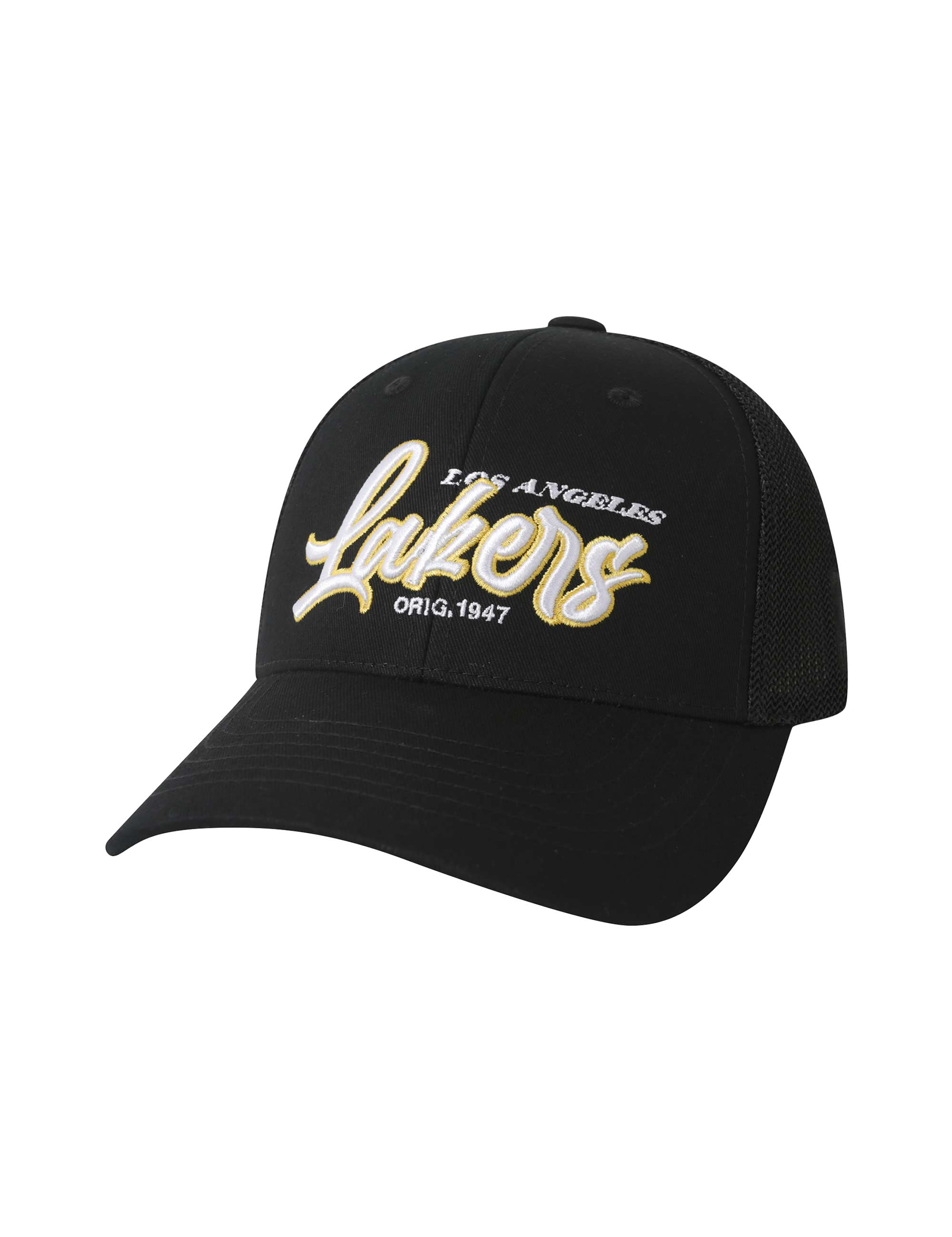 팀 컬러와 로고를 활용하여 어센틱한 무드를 연출하는 시원한 메쉬 소재 트러커 하드 볼캡.