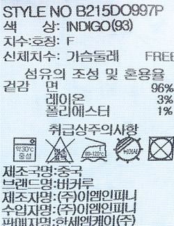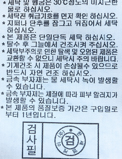 | 세탁방법 및 취급시 주의사항 | 중성세제로 단 시간내에 세탁하십시오.(케어라벨참고) |