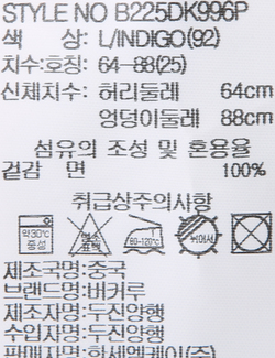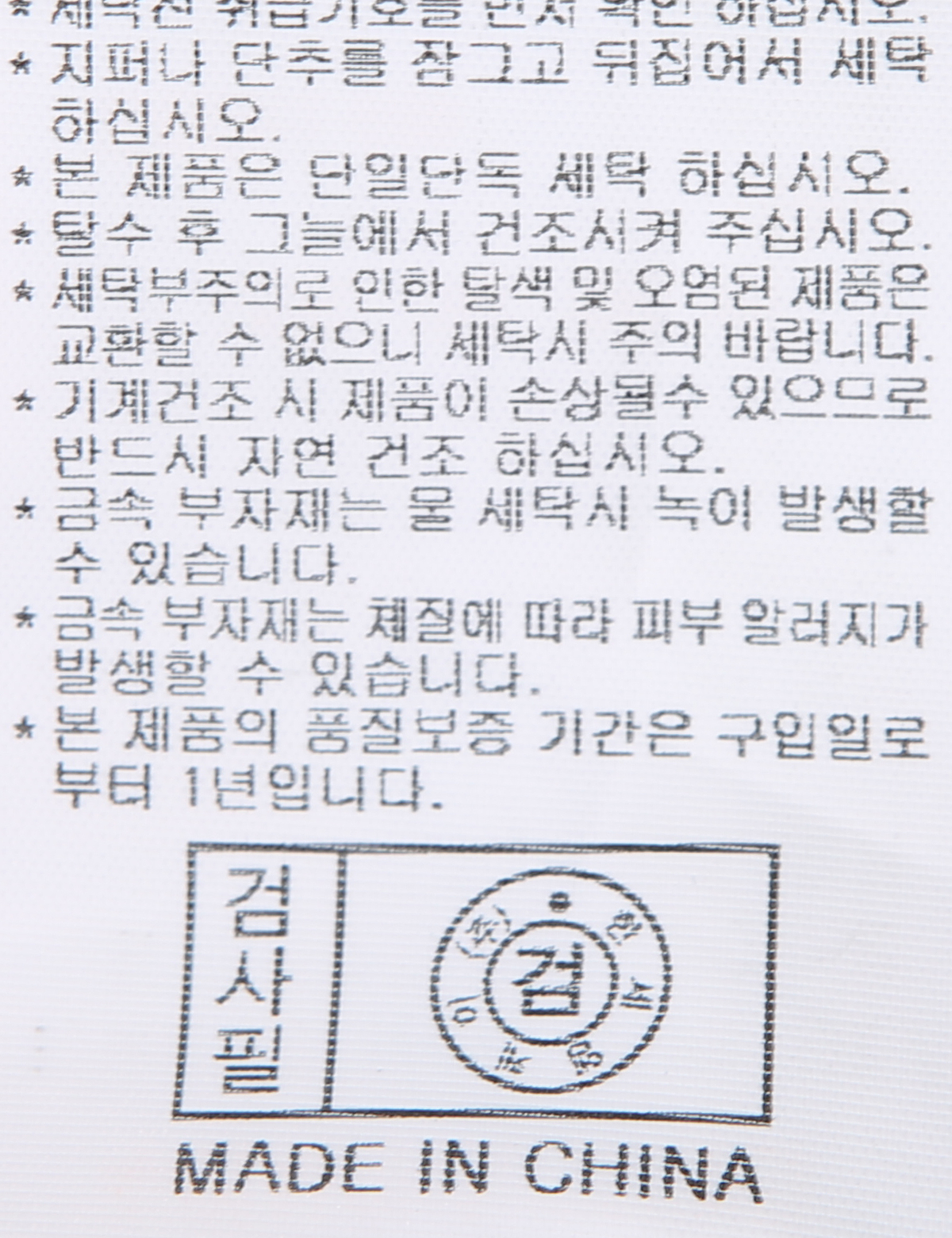 | 세탁방법 및 취급시 주의사항 | 중성세제로 단 시간내에 세탁하십시오.(케어라벨참고) |