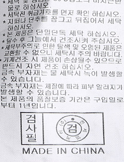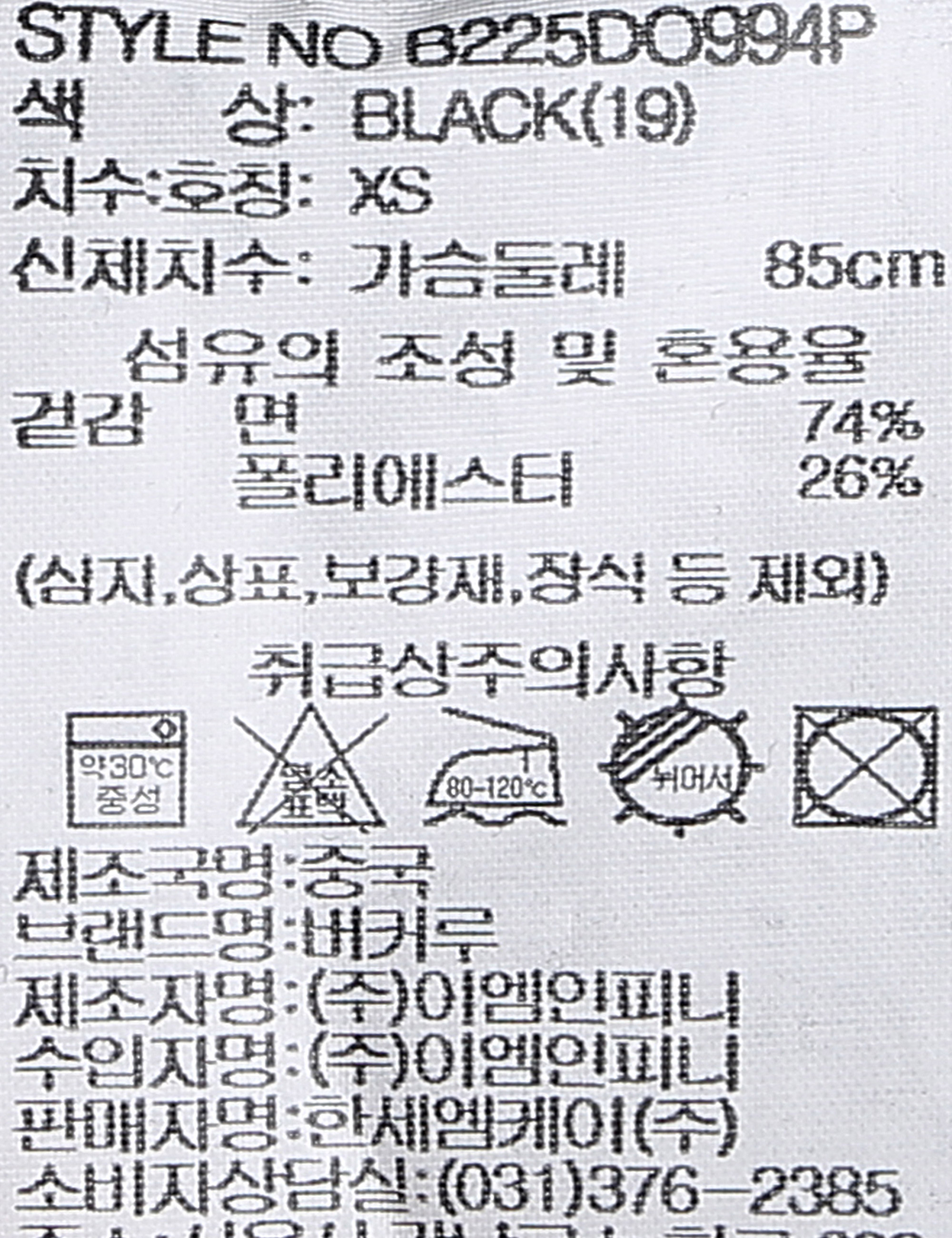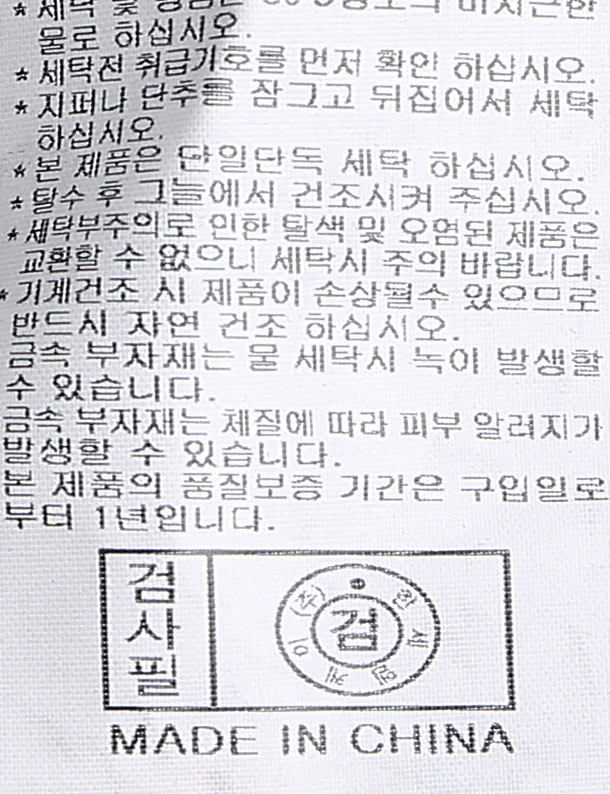 | 세탁방법 및 취급시 주의사항 | 중성세제로 단 시간내에 세탁하십시오.(케어라벨참고) |