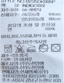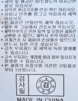 | 세탁방법 및 취급시 주의사항 | 중성세제로 단 시간내에 세탁하십시오.(케어라벨참고) |