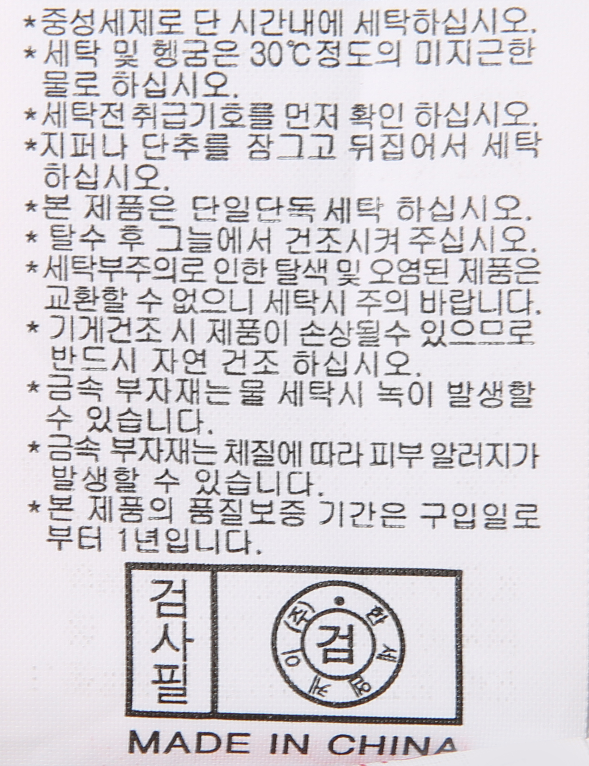 세탁방법 및 취급시 주의사항 중성세제로 단 시간내에 세탁하십시오.(케어라벨참고)