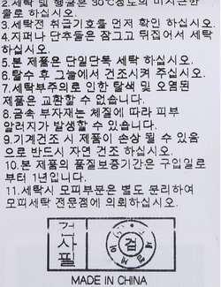 | 세탁방법 및 취급시 주의사항 | 본 제품은 손세탁 하십시오.(케어라벨참고) |