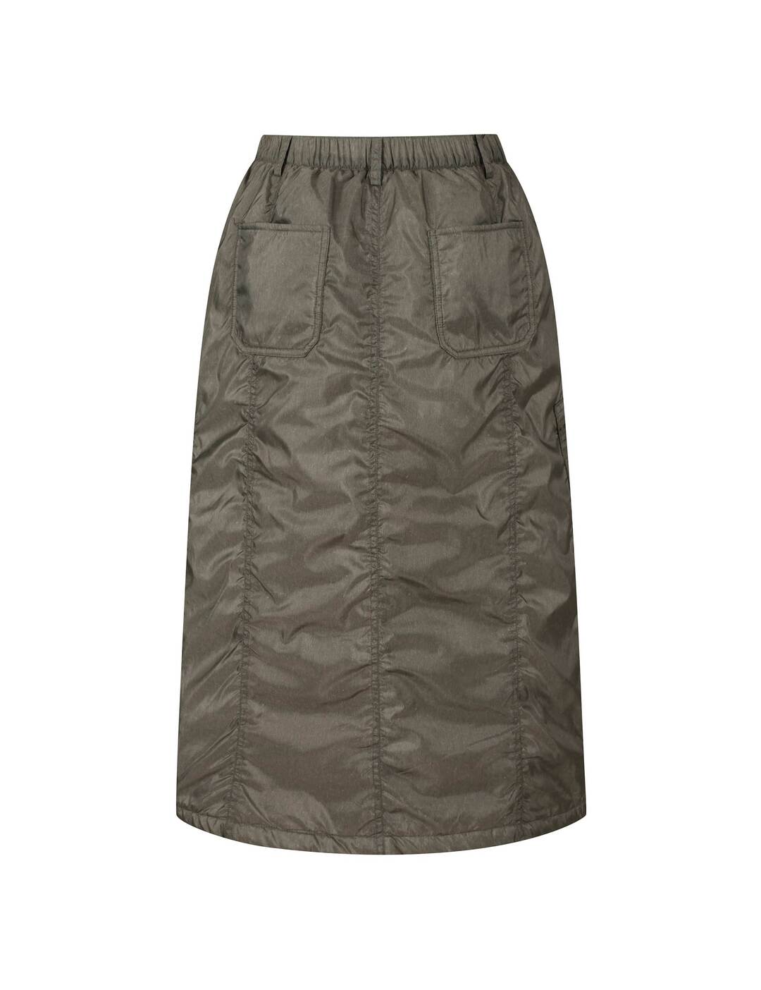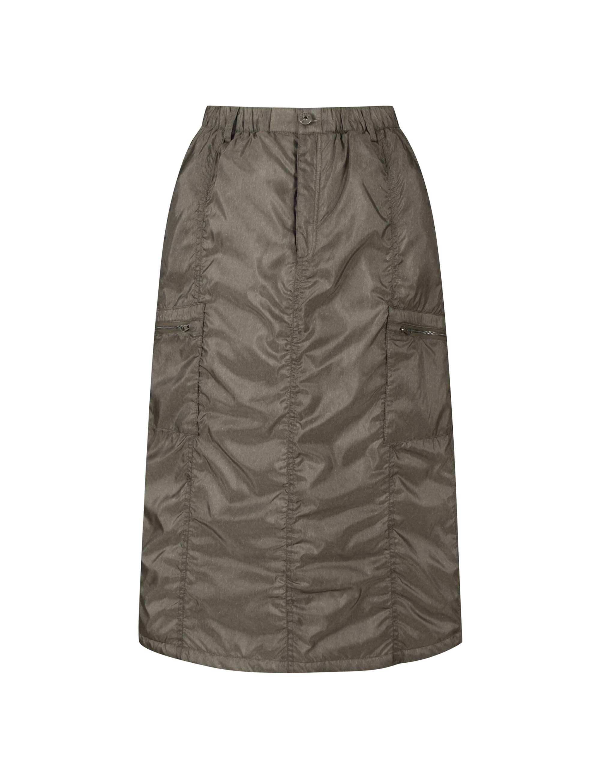 * 빈티지 효과를 준 프린트 원단을 사용한 롱패딩 스커트