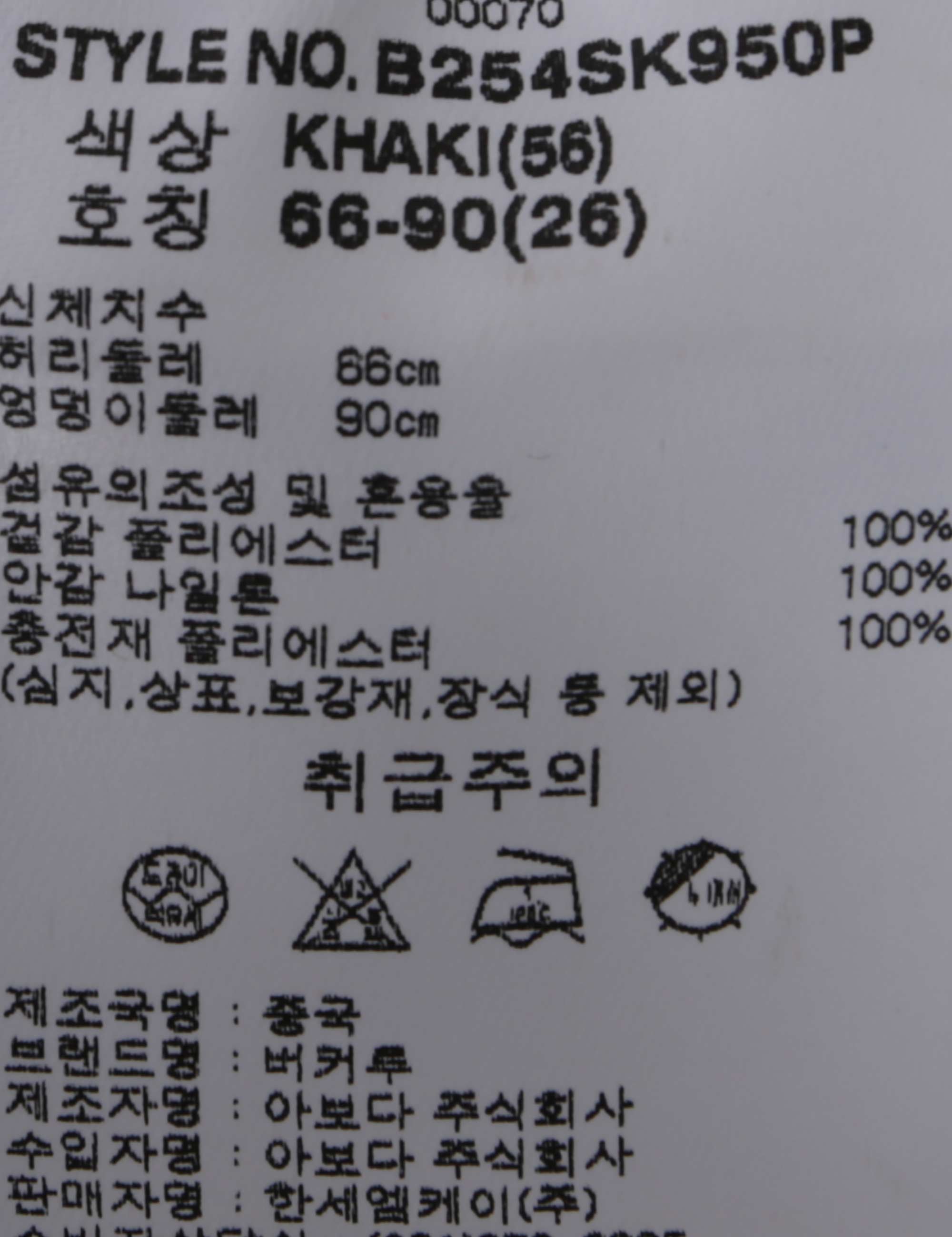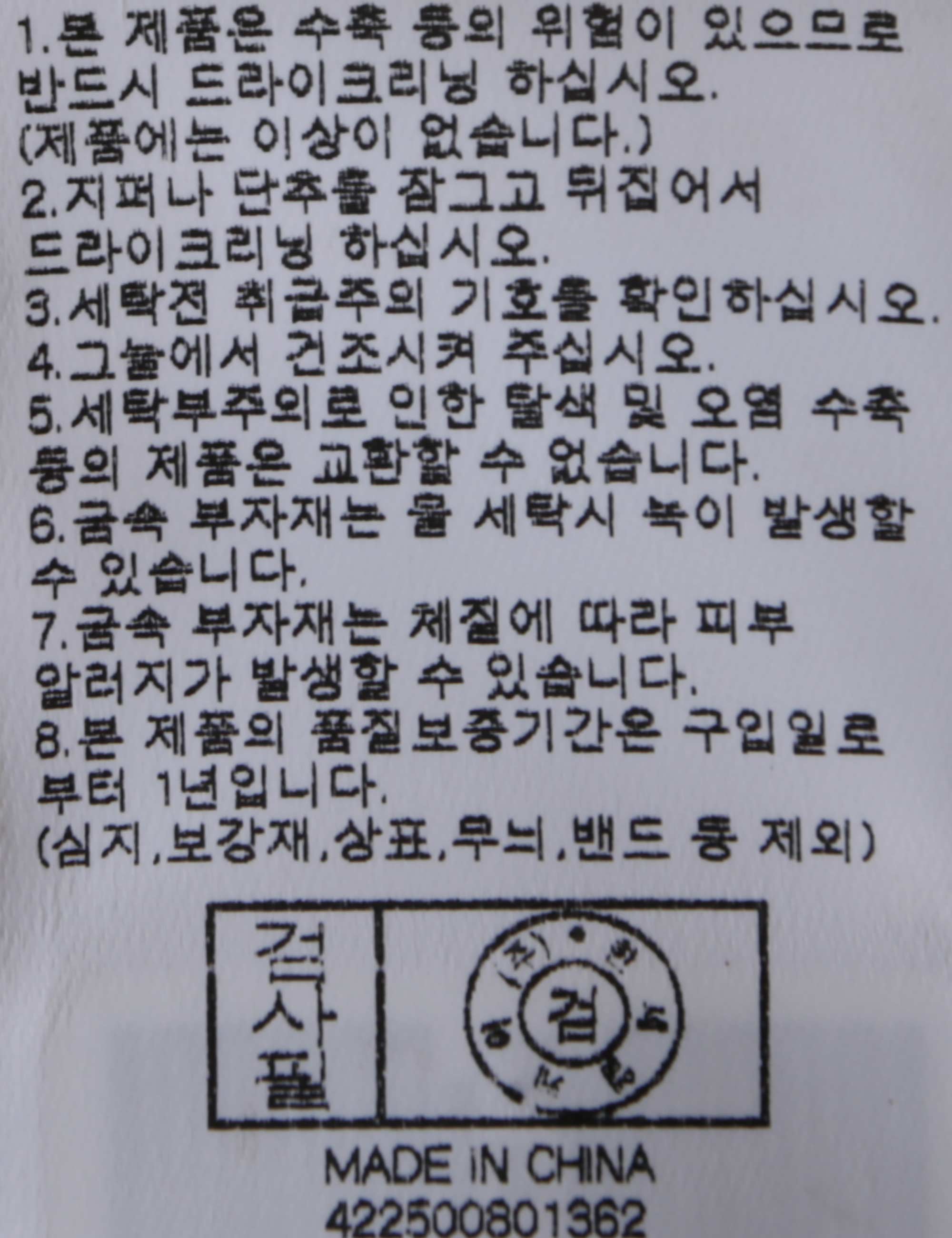 | 세탁방법 및 취급시 주의사항 | 본 제품은 반드시 드라이크리닝 하십시오.(세탁라벨참고) |