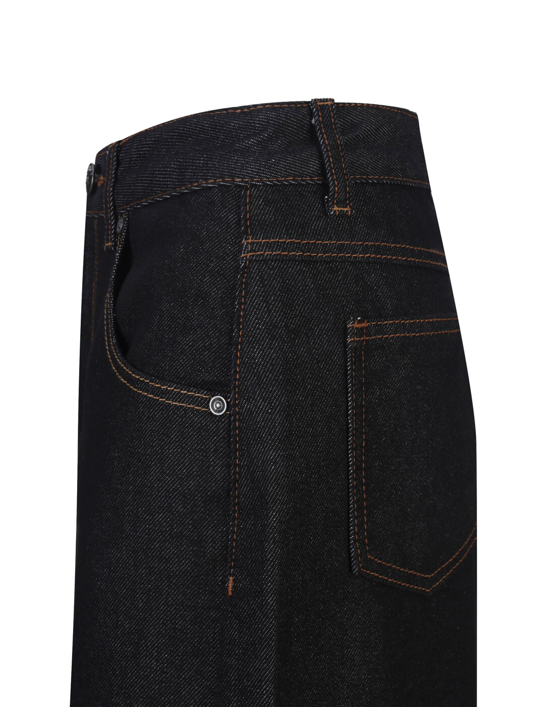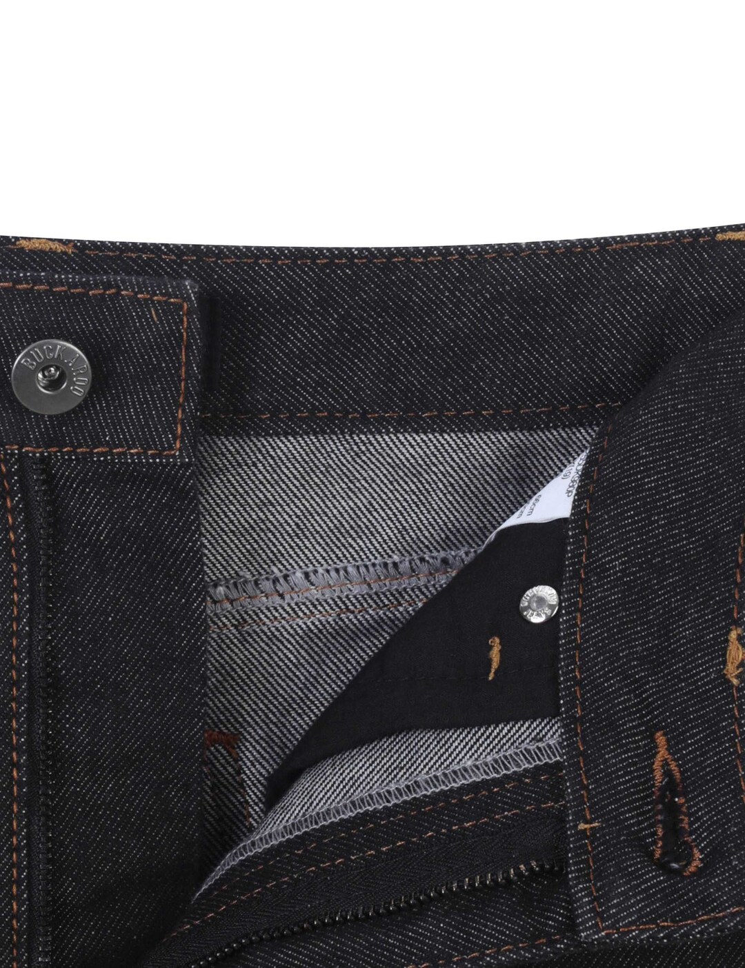 -뒷주머니 버커루 바지모양 금속 장식 디테일
