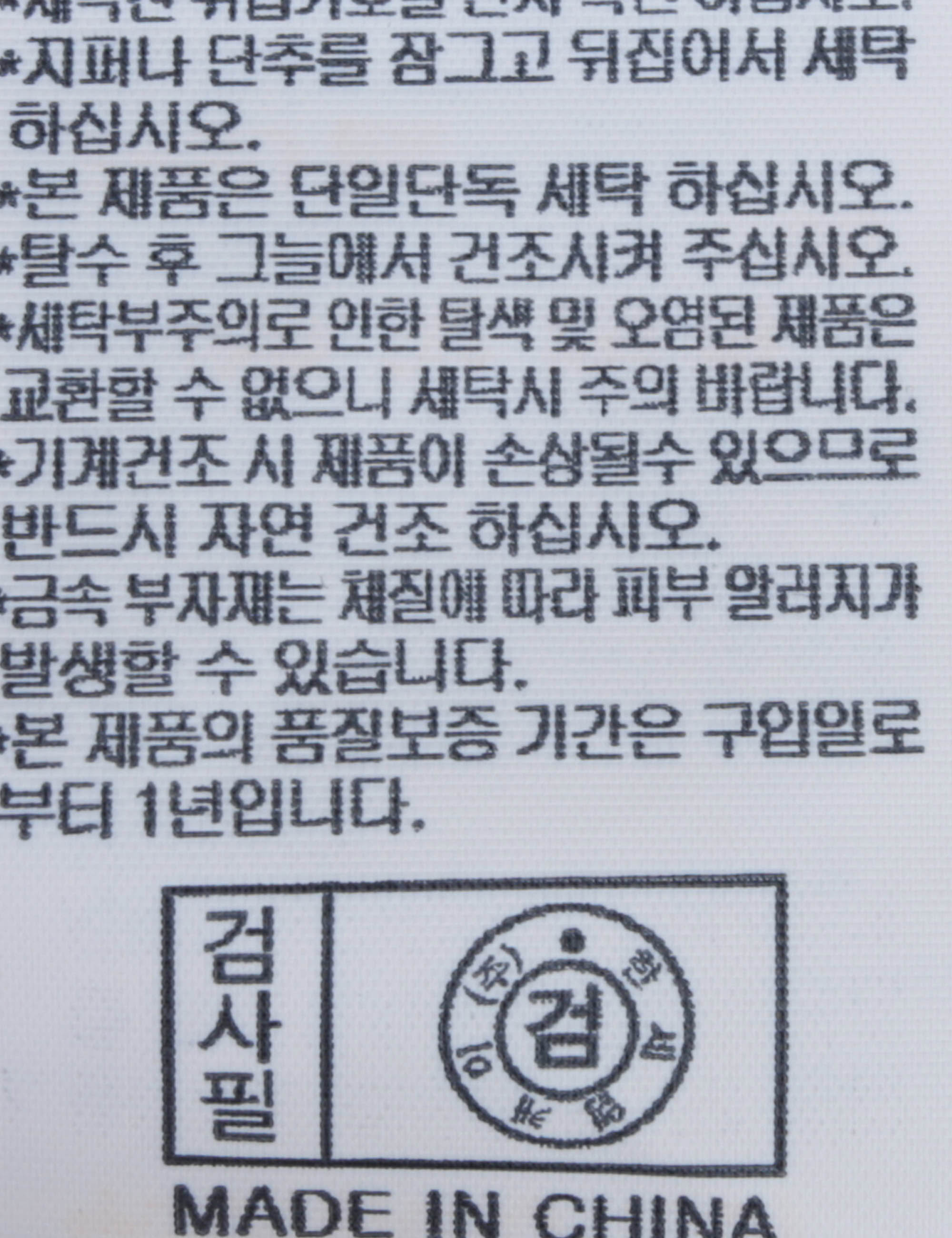 | 세탁방법 및 취급시 주의사항 | 중성세제로 단 시간내에 세탁하십시오.(케어라벨참고) |