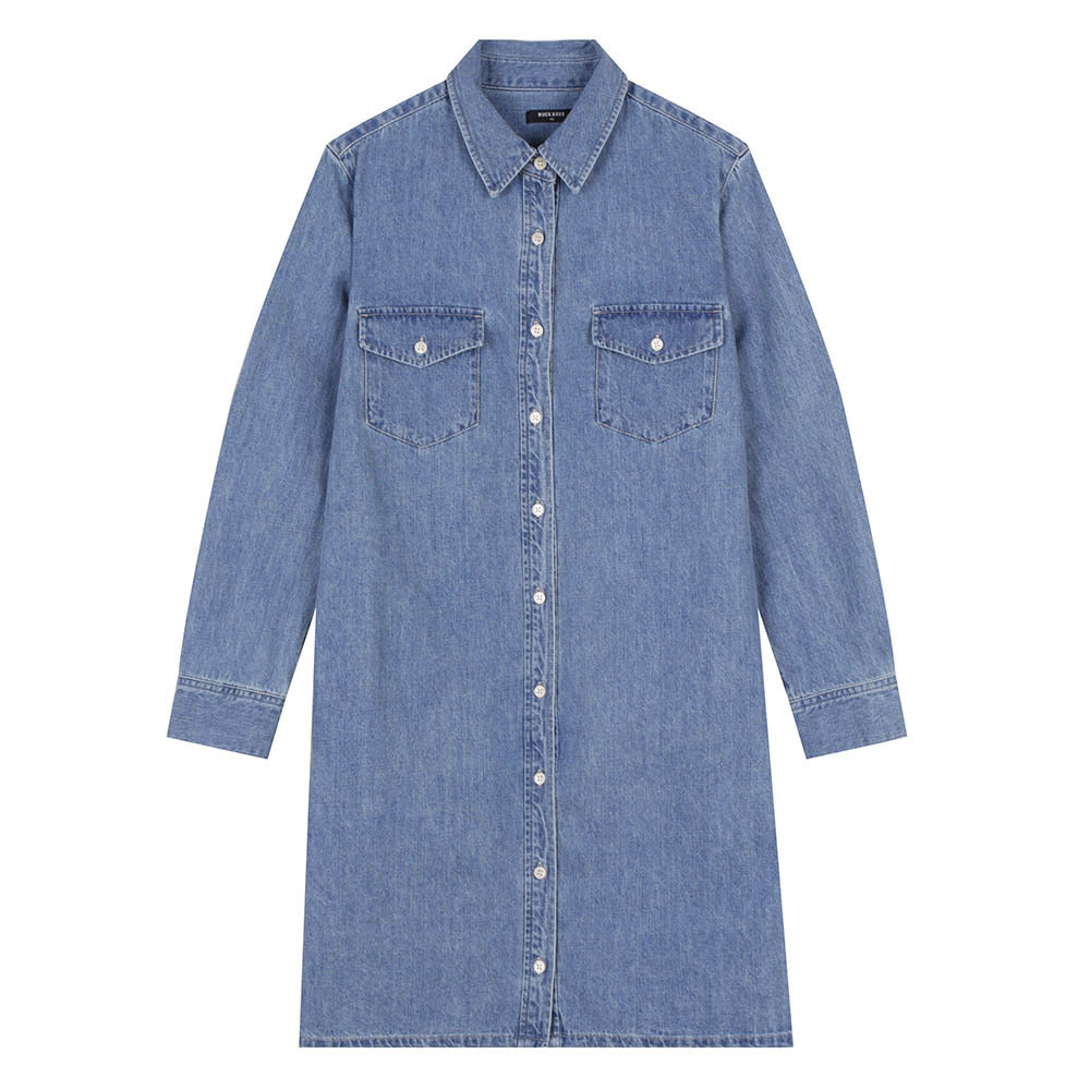 여성 투포켓 셔츠형 M톤 데님 원피스(B255DO990P)