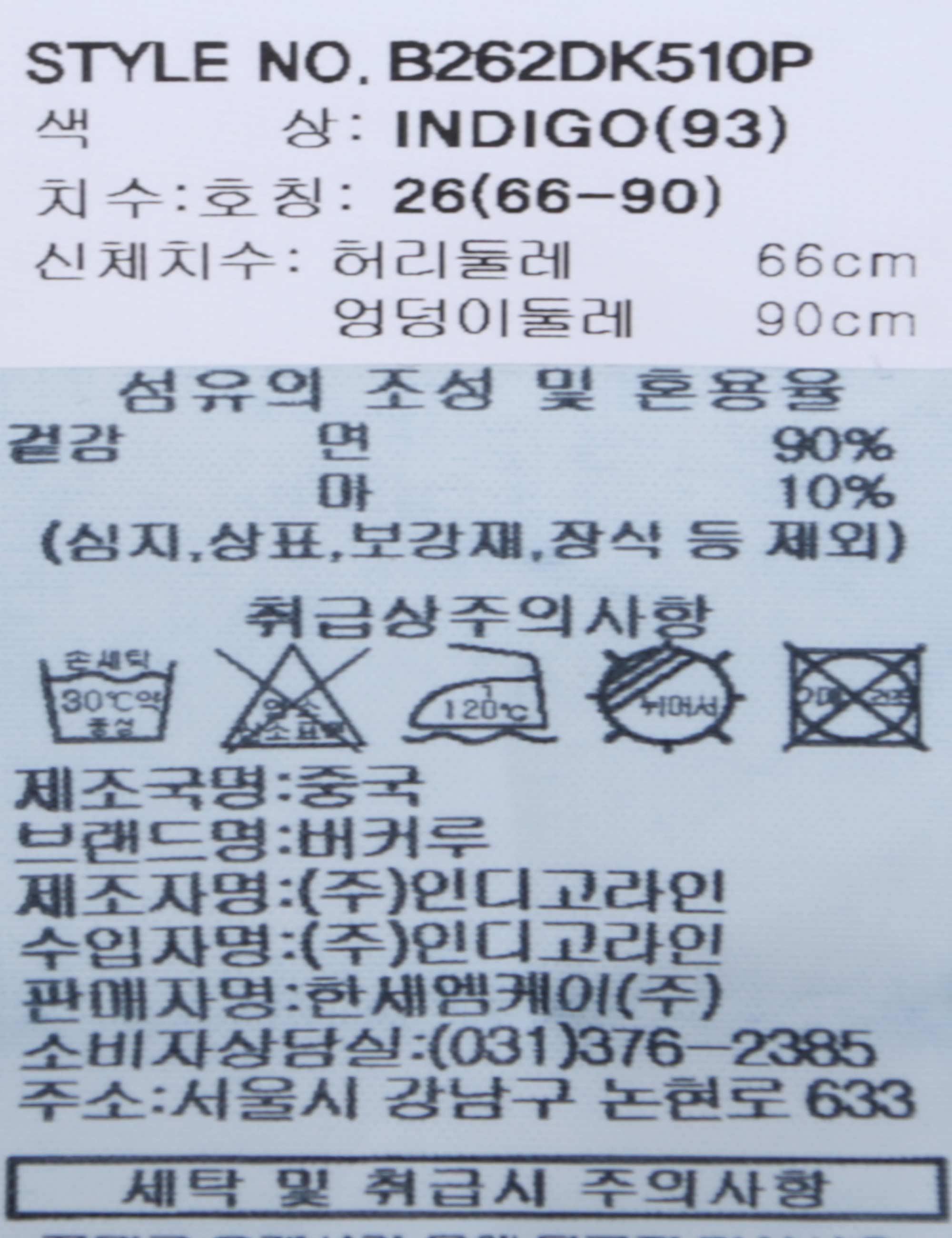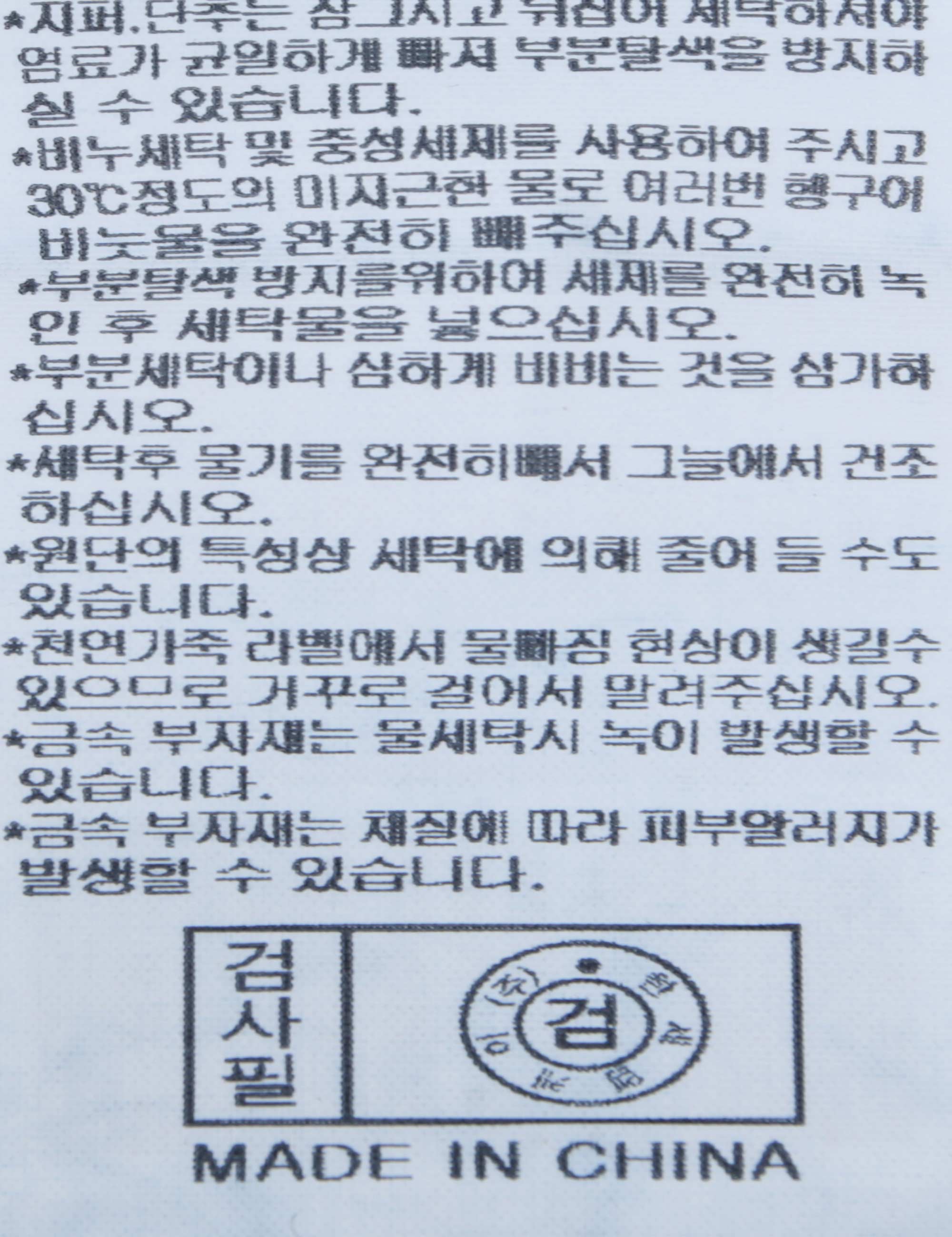 | 세탁방법 및 취급시 주의사항 | 본 제품은 손세탁 하십시오.(케어라벨참고) |