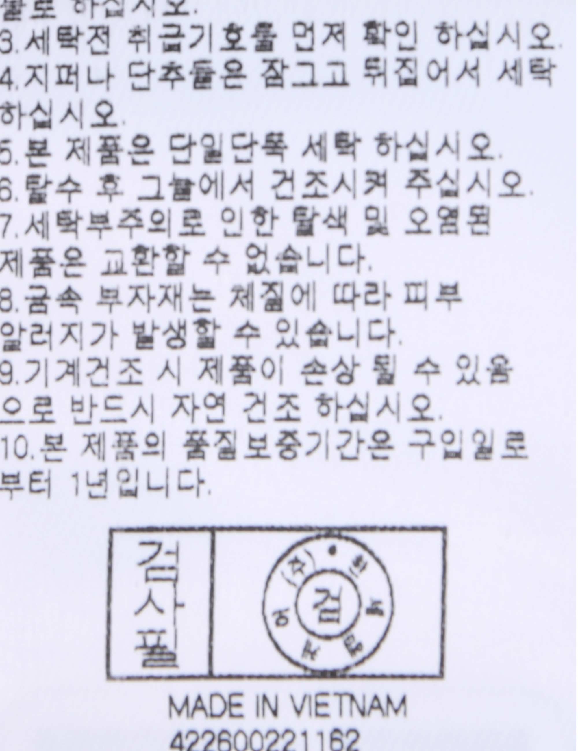 세탁방법 및 취급시 주의사항 본 제품은 손세탁 하십시오.(케어라벨참고)