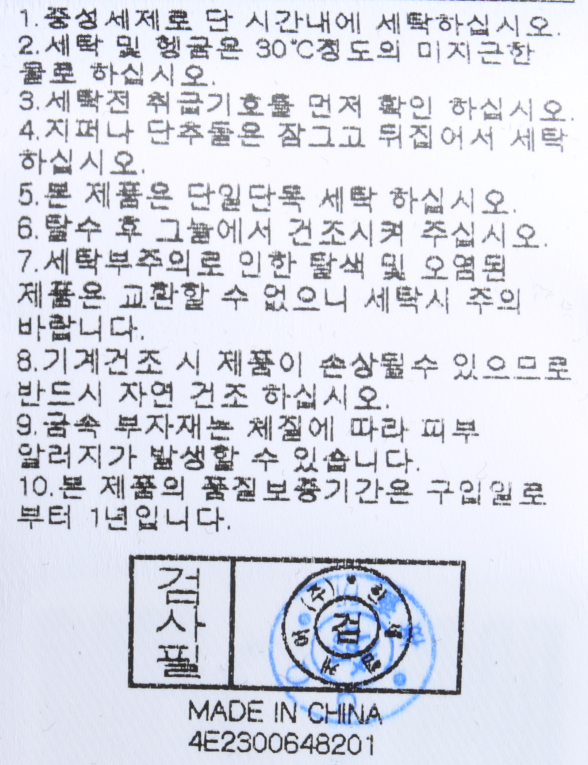 세탁방법 및 취급시 주의사항 중성세제로 단 시간내에 세탁하십시오.(케어라벨참고)