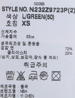 제품소재 [겉감]면70% 폴리에스터30% [배색]면63% 폴리에스터37%