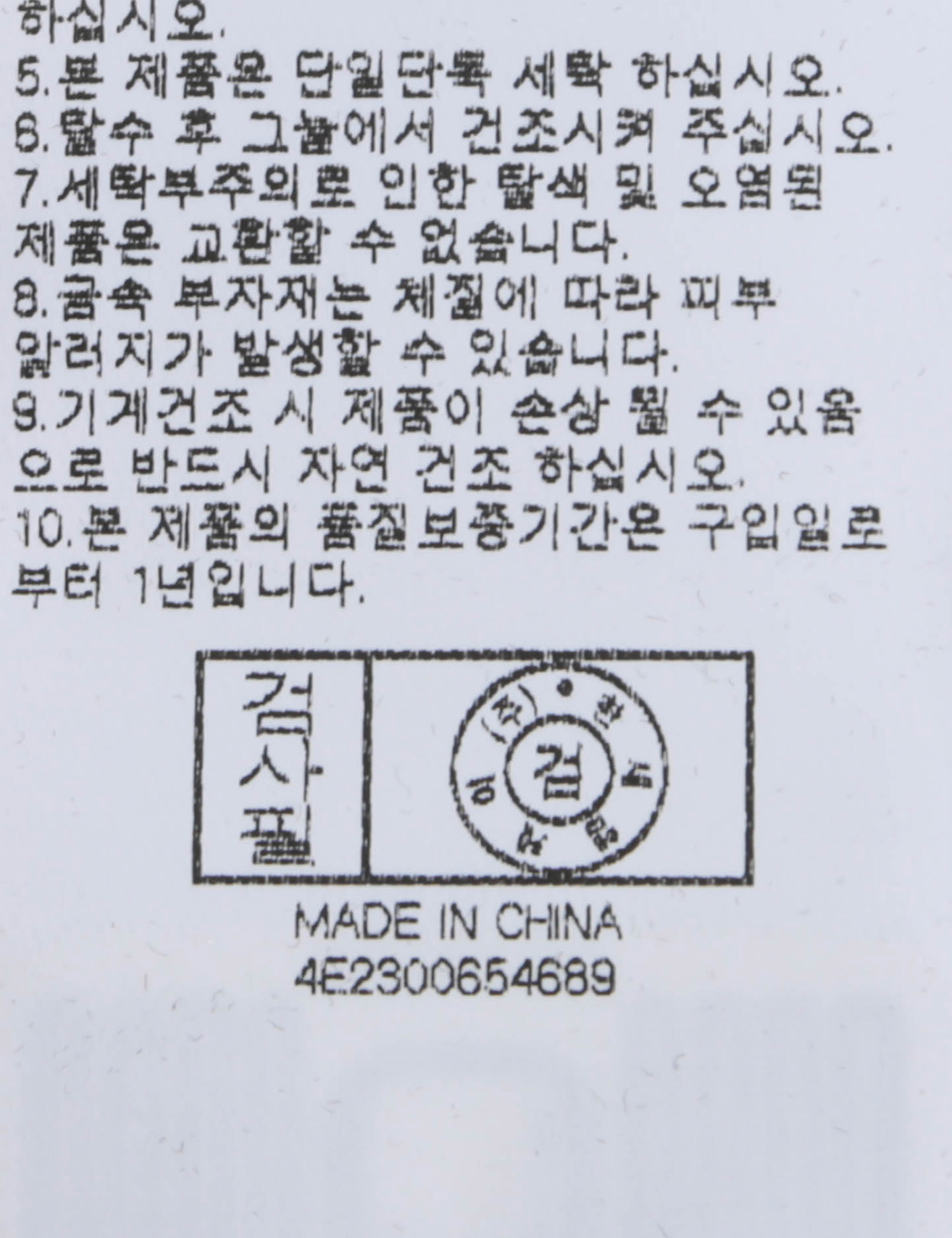 | 세탁방법 및 취급시 주의사항 | 중성세제로 단 시간내에 세탁하십시오.(케어라벨참고) |