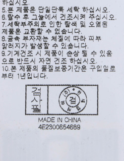 세탁방법 및 취급시 주의사항 중성세제로 단 시간내에 세탁하십시오.(케어라벨참고)