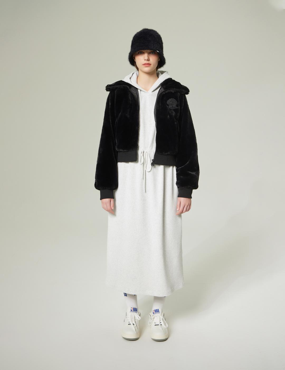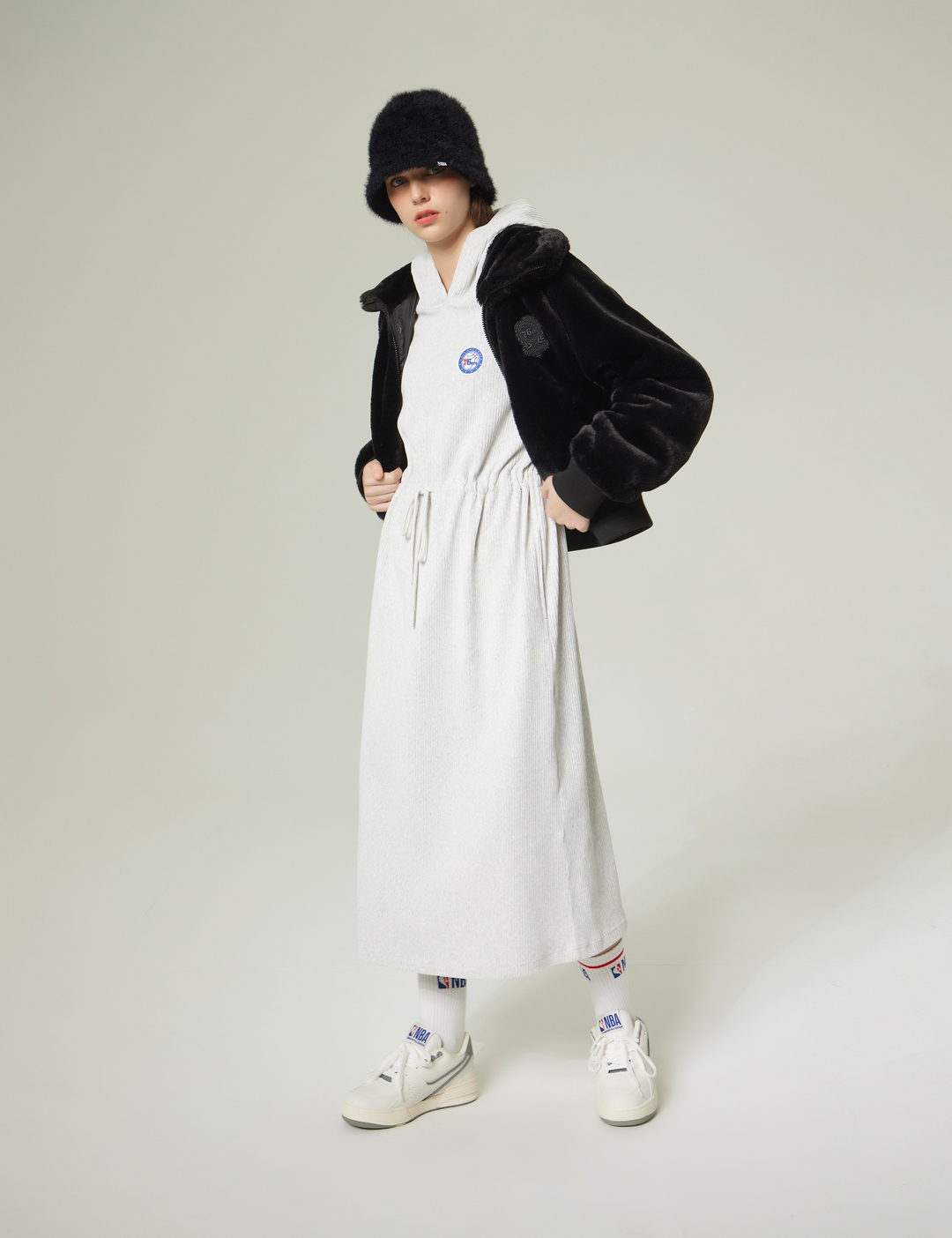 전체적으로 여유로운 핏의 원피스 스타일로 발목까지 오는 길이감과 보온성이 높은 벨로아 코듀로이 원단을 사용하여 따뜻하게 착장가능.