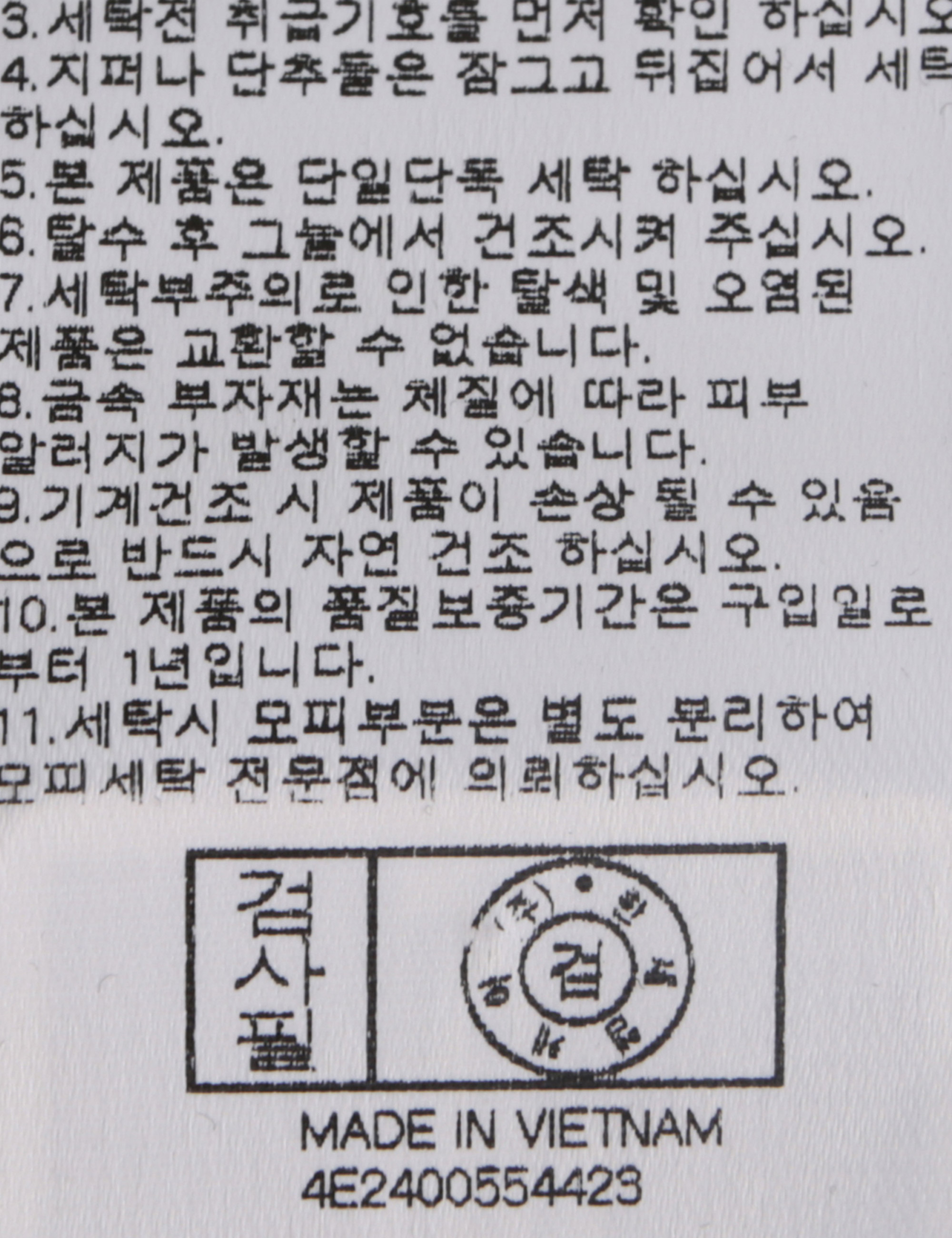 | 세탁방법 및 취급시 주의사항 | 본 제품은 손세탁 하십시오.(케어라벨참고) |