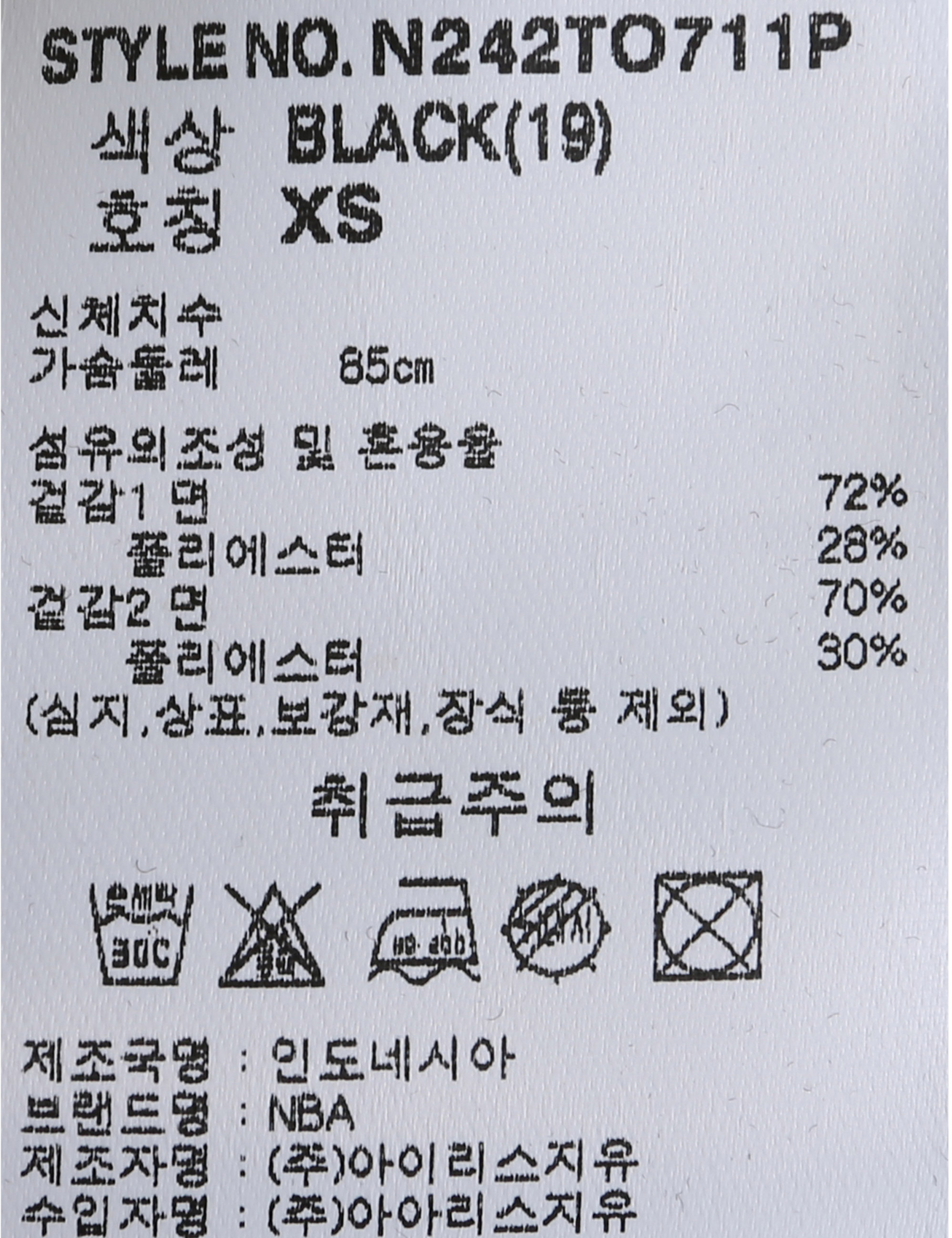 제품소재 [겉감1]면72% 폴리에스터28% [겉감2]면70% 폴리에스터30%