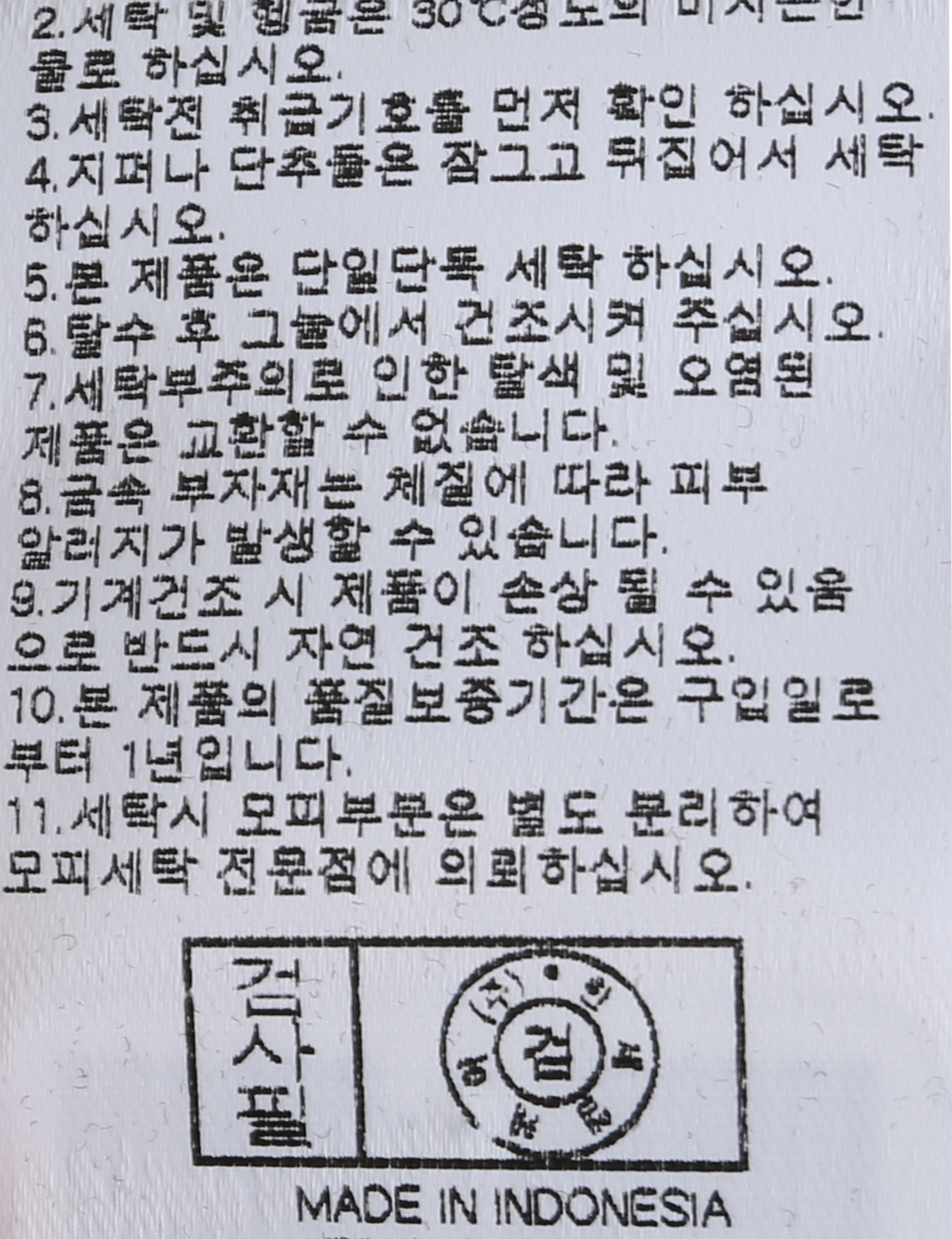 세탁방법 및 취급시 주의사항 본 제품은 손세탁 하십시오.(케어라벨참고)