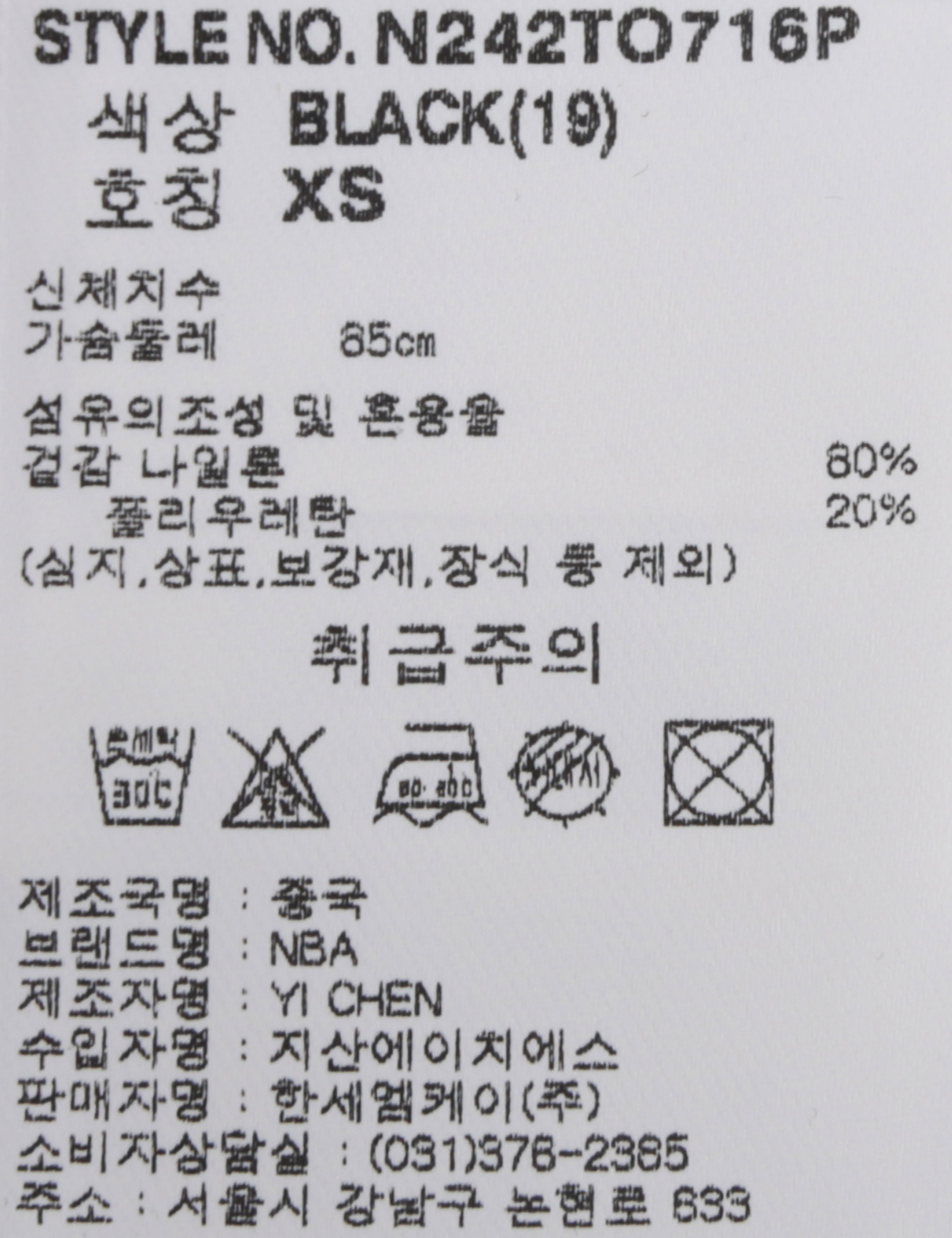제품소재 [겉감]나일론80% 폴리우레탄20%