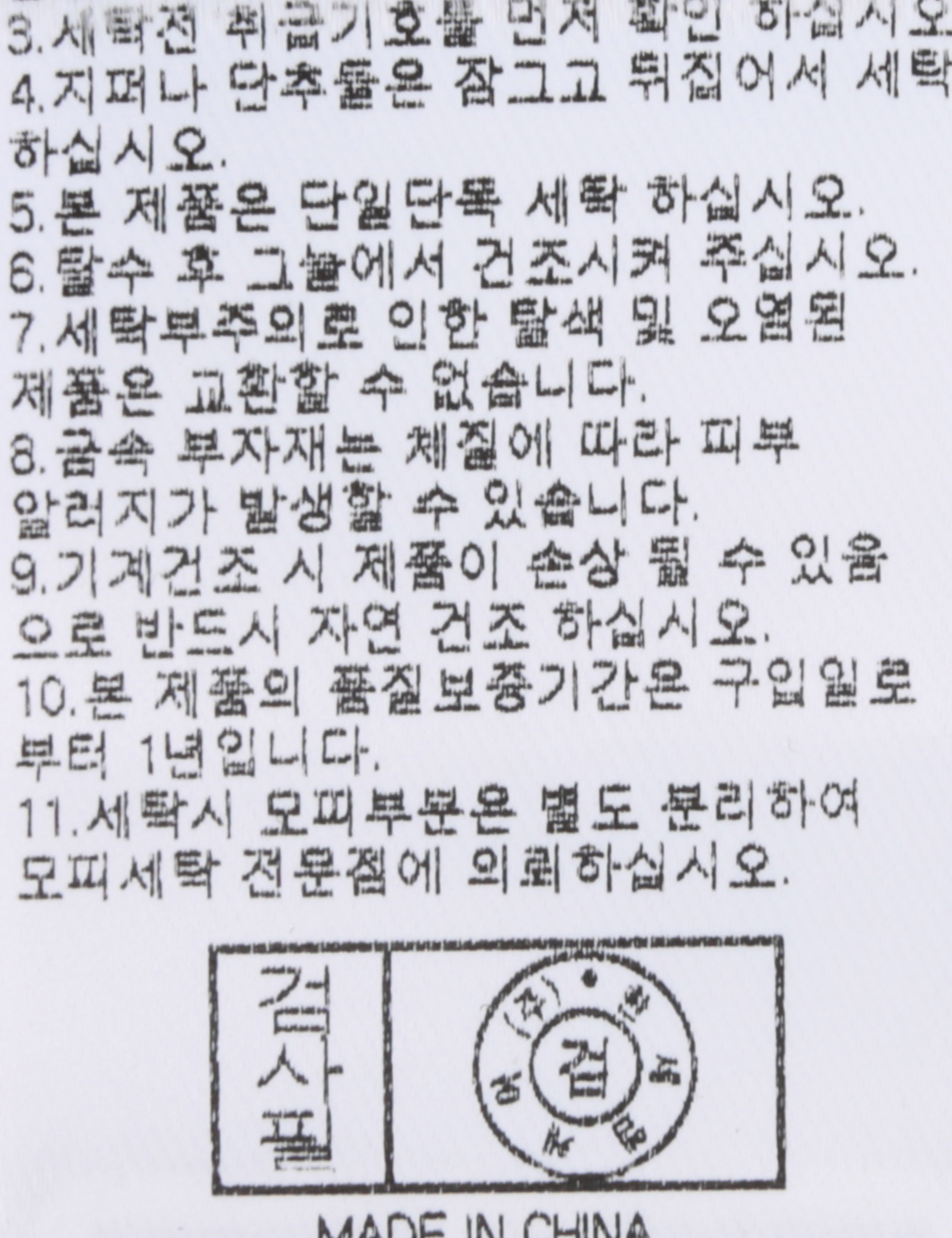 세탁방법 및 취급시 주의사항 본 제품은 손세탁 하십시오.(케어라벨참고)