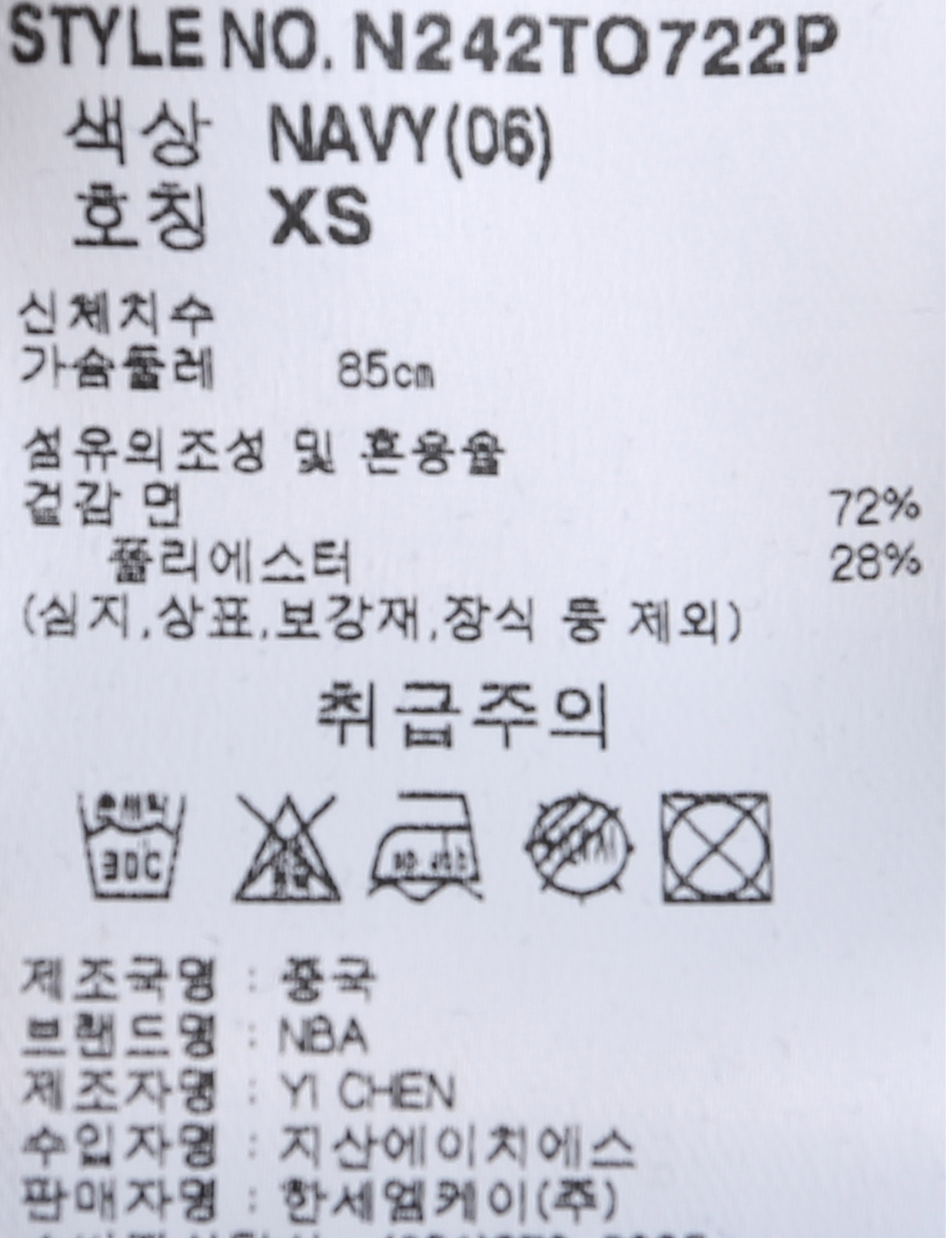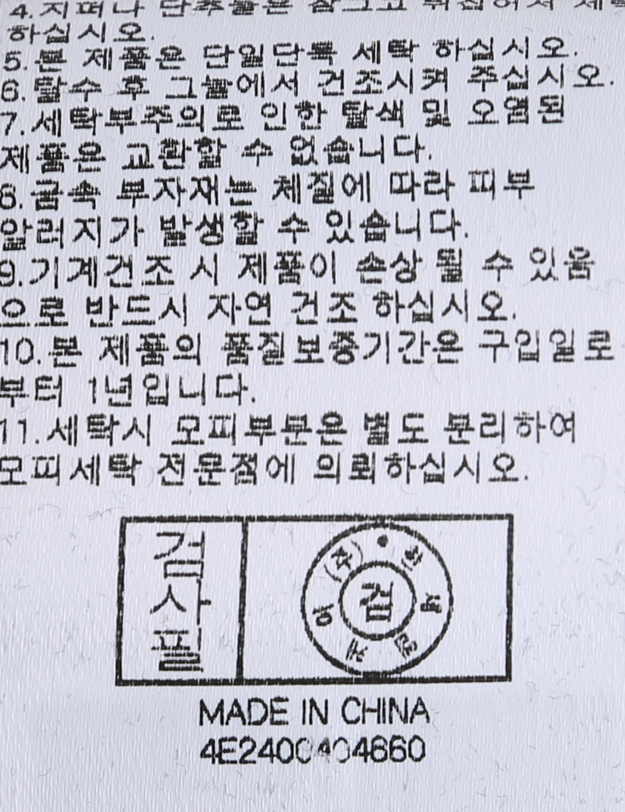 세탁방법 및 취급시 주의사항 본 제품은 손세탁 하십시오.(케어라벨참고)