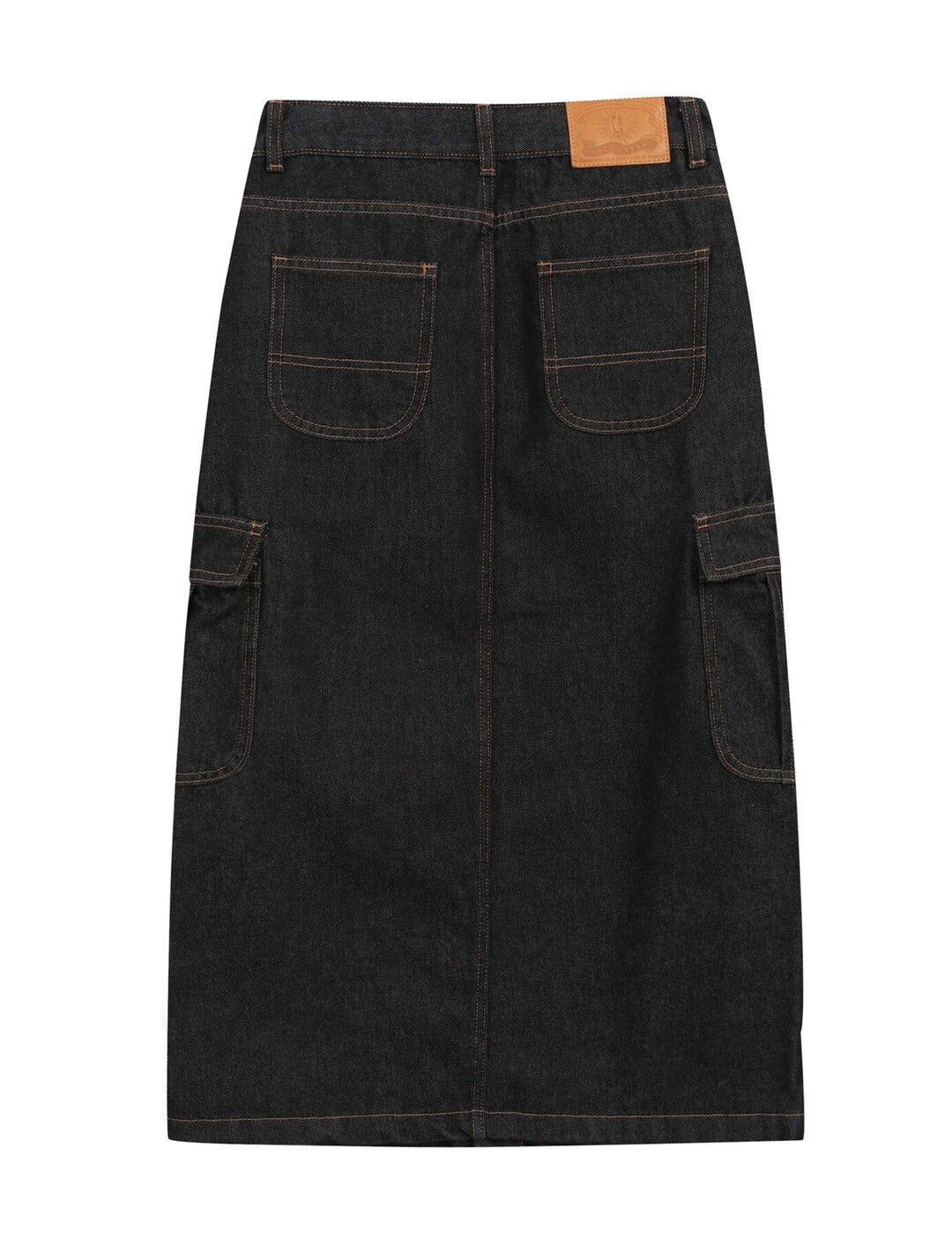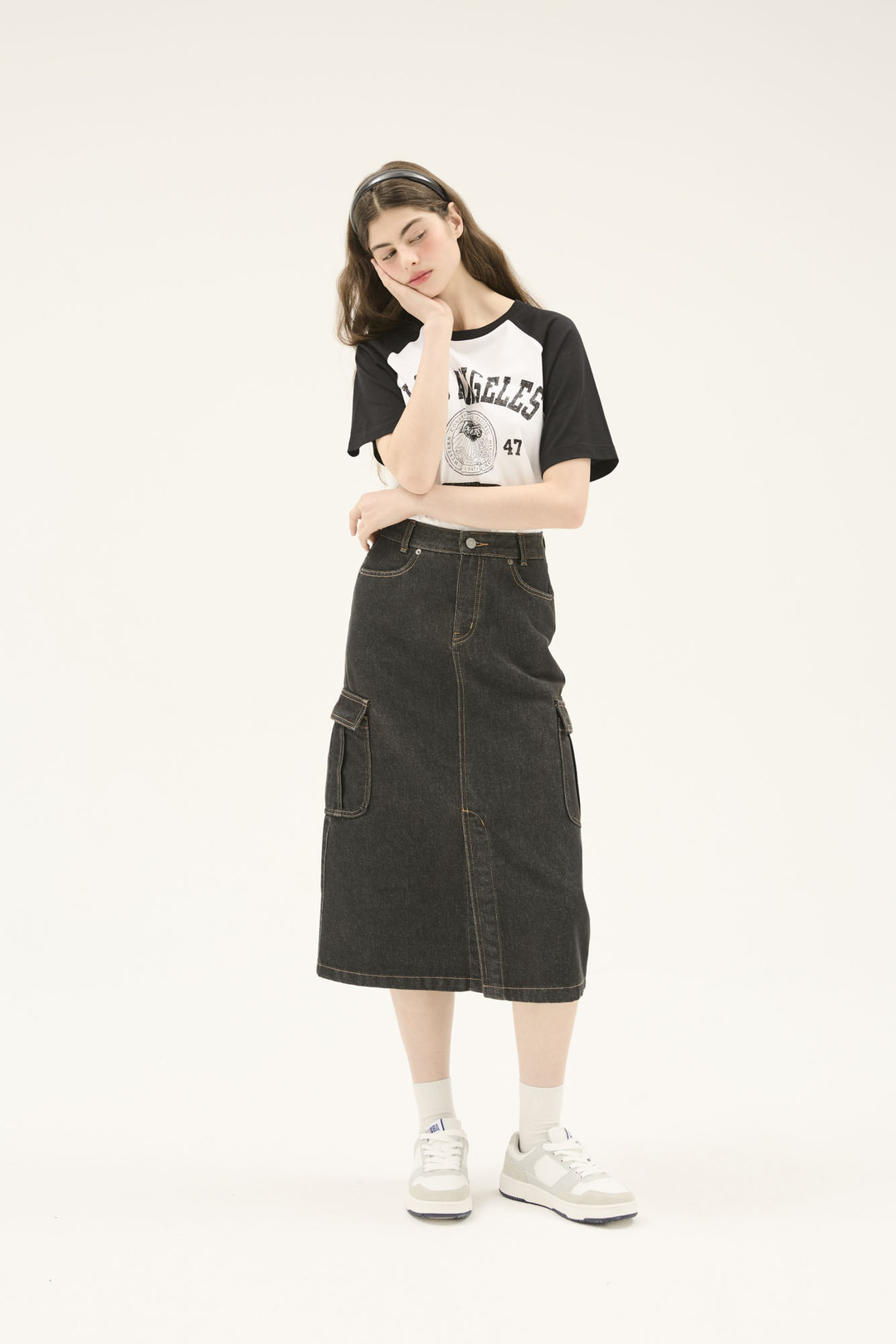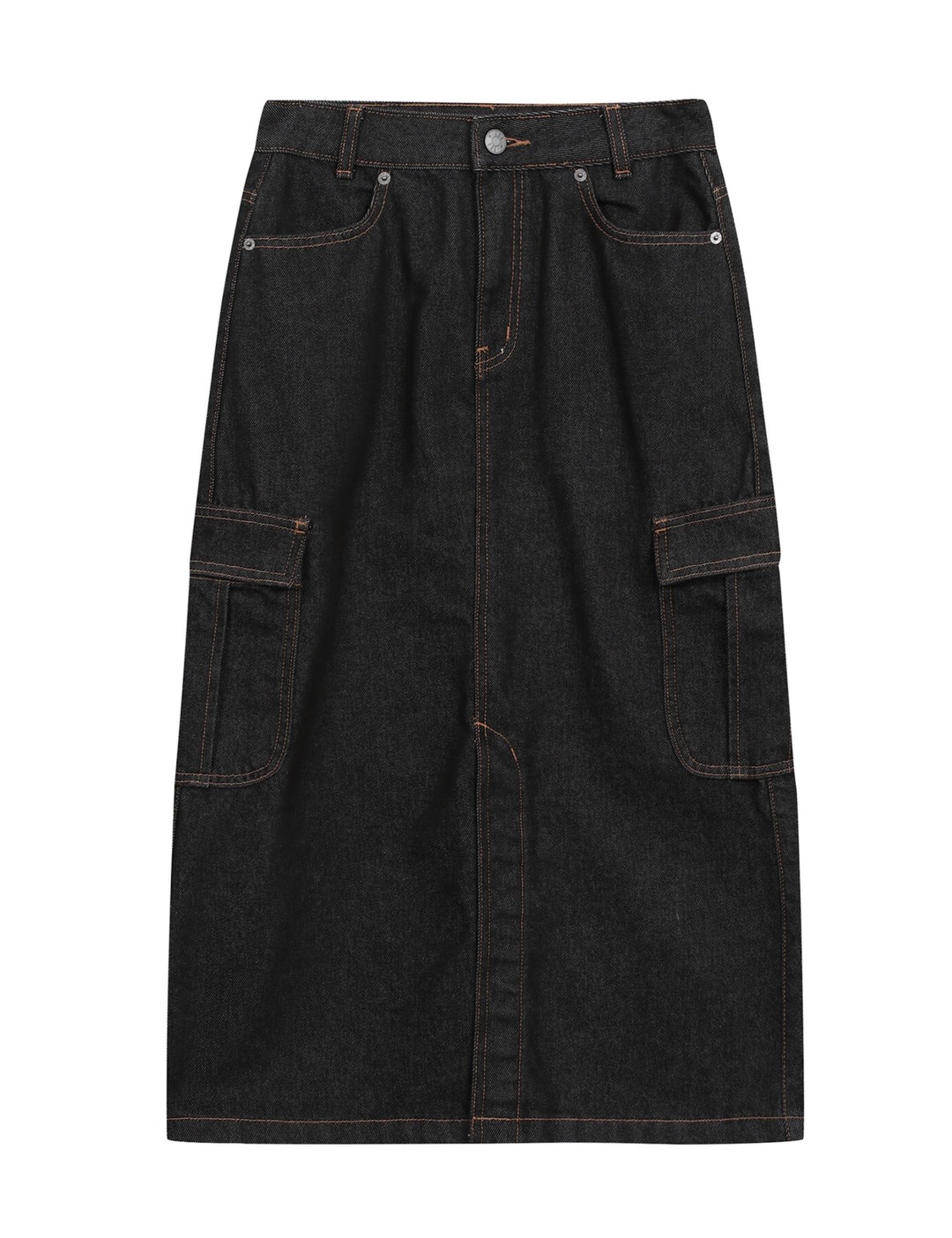 수납이 용이한 큼직한 카고 포켓이 포인트인 카고 포켓 미디 스커트