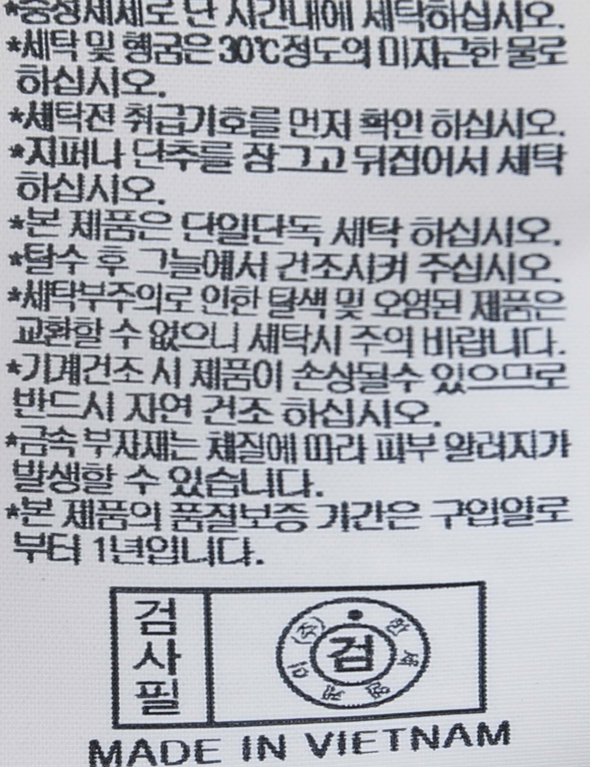 세탁방법 및 취급시 주의사항 중성세제로 단 시간내에 세탁하십시오.(케어라벨참고)