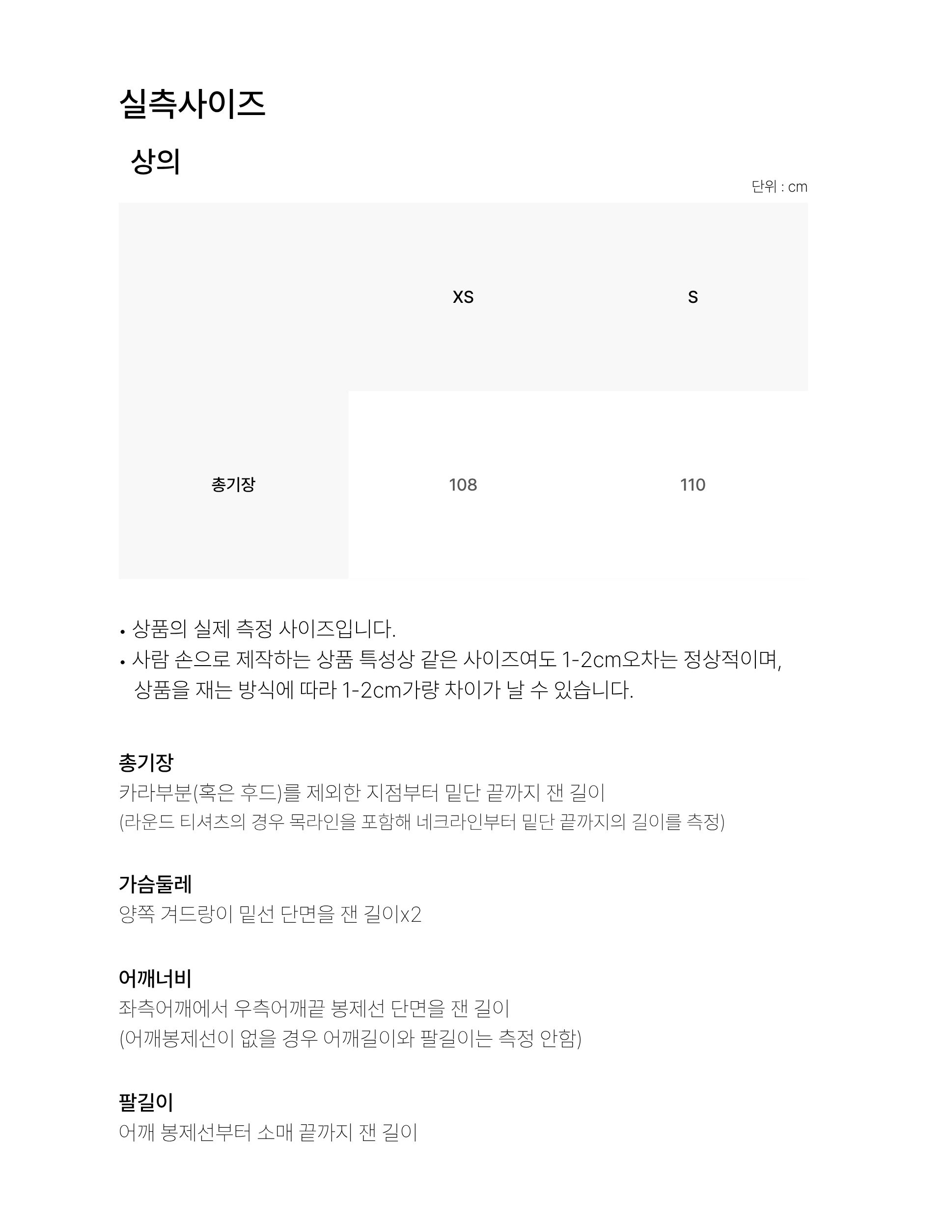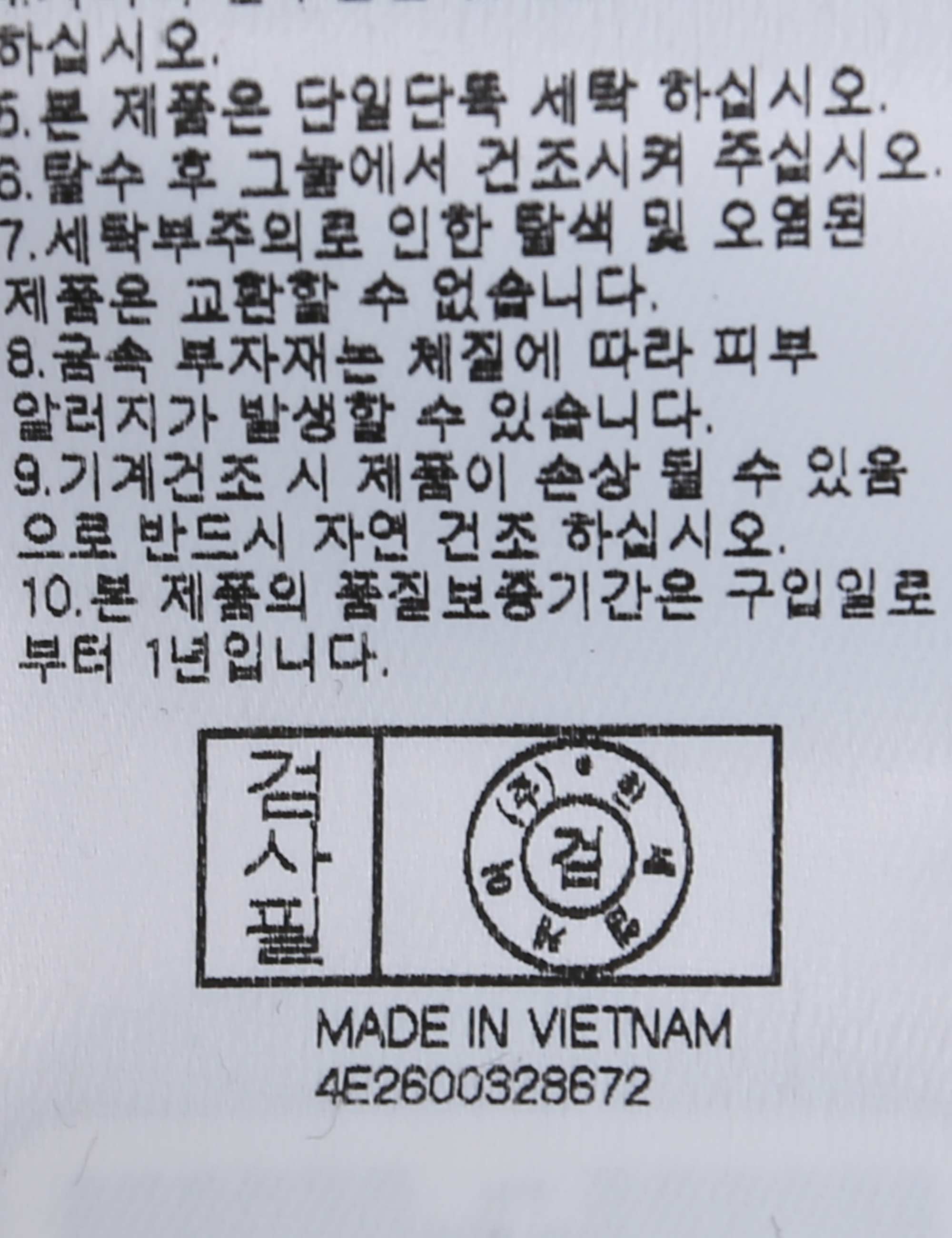 | 세탁방법 및 취급시 주의사항 | 본 제품은 손세탁 하십시오.(케어라벨참고) |