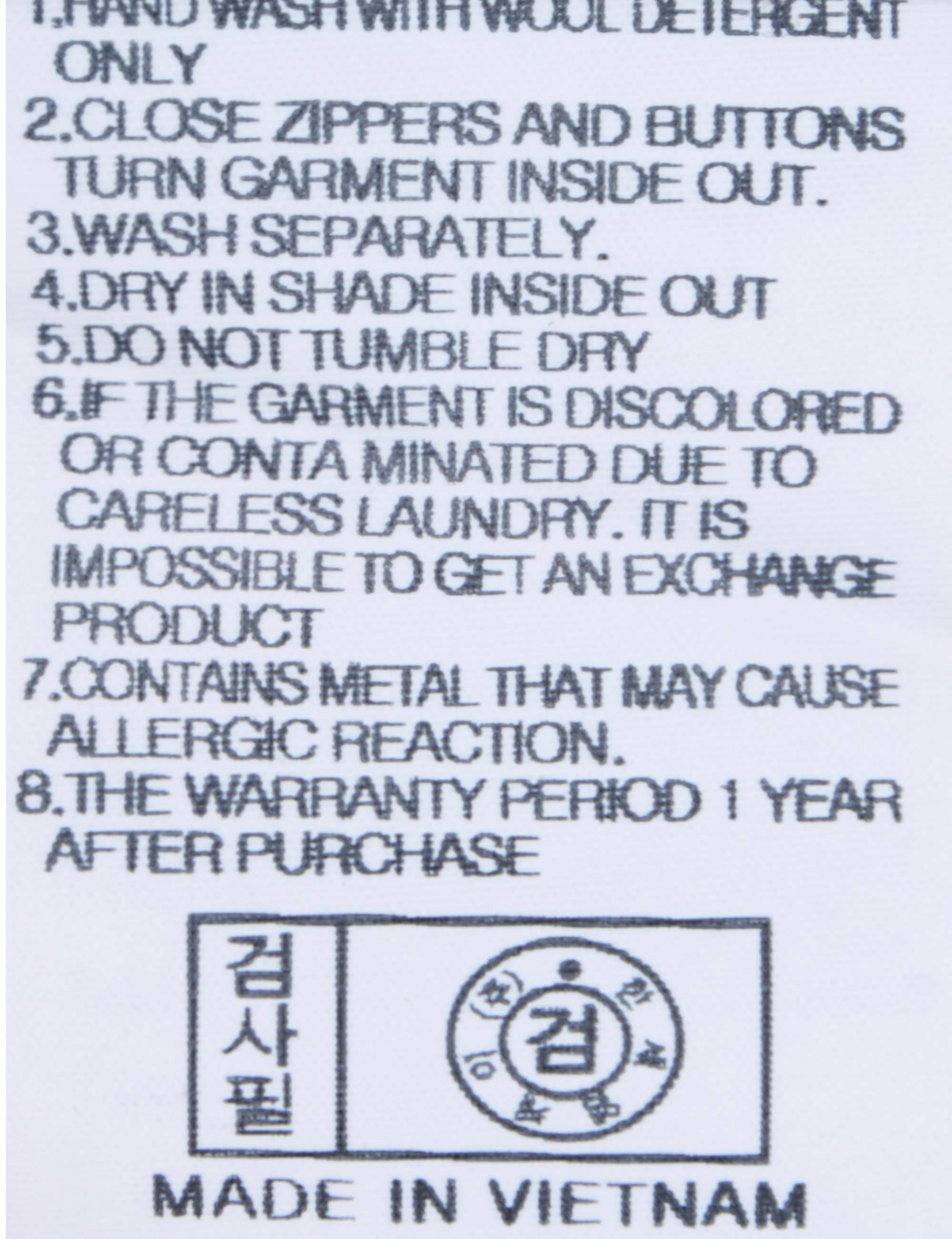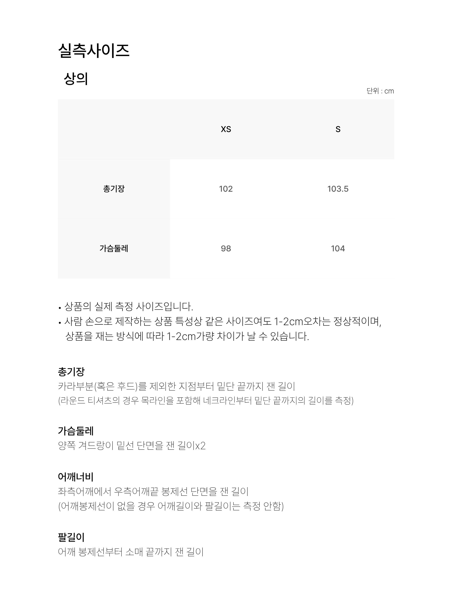 | 세탁방법 및 취급시 주의사항 | 본 제품은 손세탁 하십시오.(케어라벨참고) |