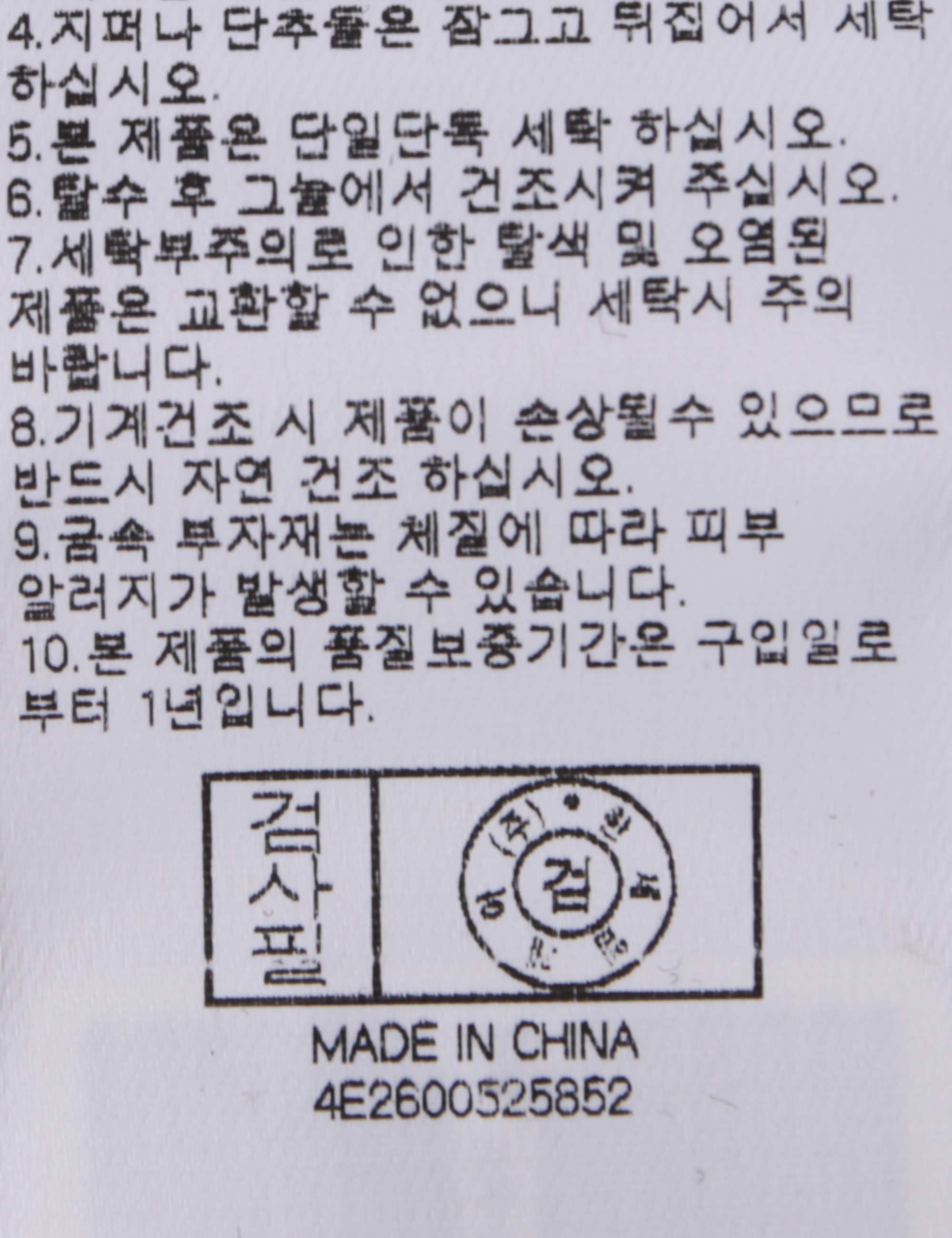 | 세탁방법 및 취급시 주의사항 | 중성세제로 단 시간내에 세탁하십시오.(케어라벨참고) |