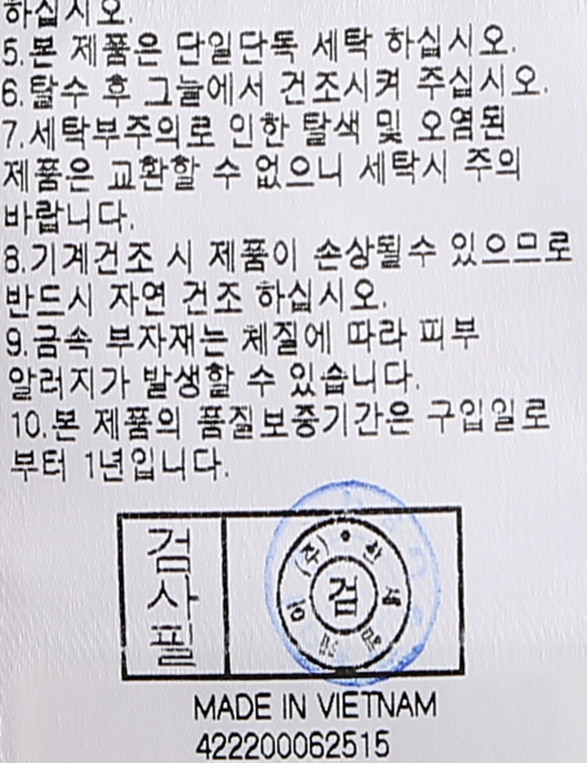 | 세탁방법 및 취급시 주의사항 | 중성세제로 단 시간내에 세탁하십시오.(케어라벨참고) |