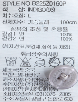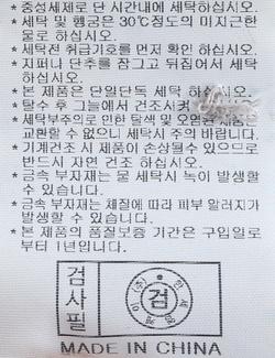 | 세탁방법 및 취급시 주의사항 | 중성세제로 단 시간내에 세탁하십시오.(케어라벨참고) |