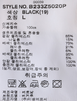 | 세탁방법 및 취급시 주의사항 | 중성세제로 단 시간내에 세탁하십시오.(케어라벨참고) |