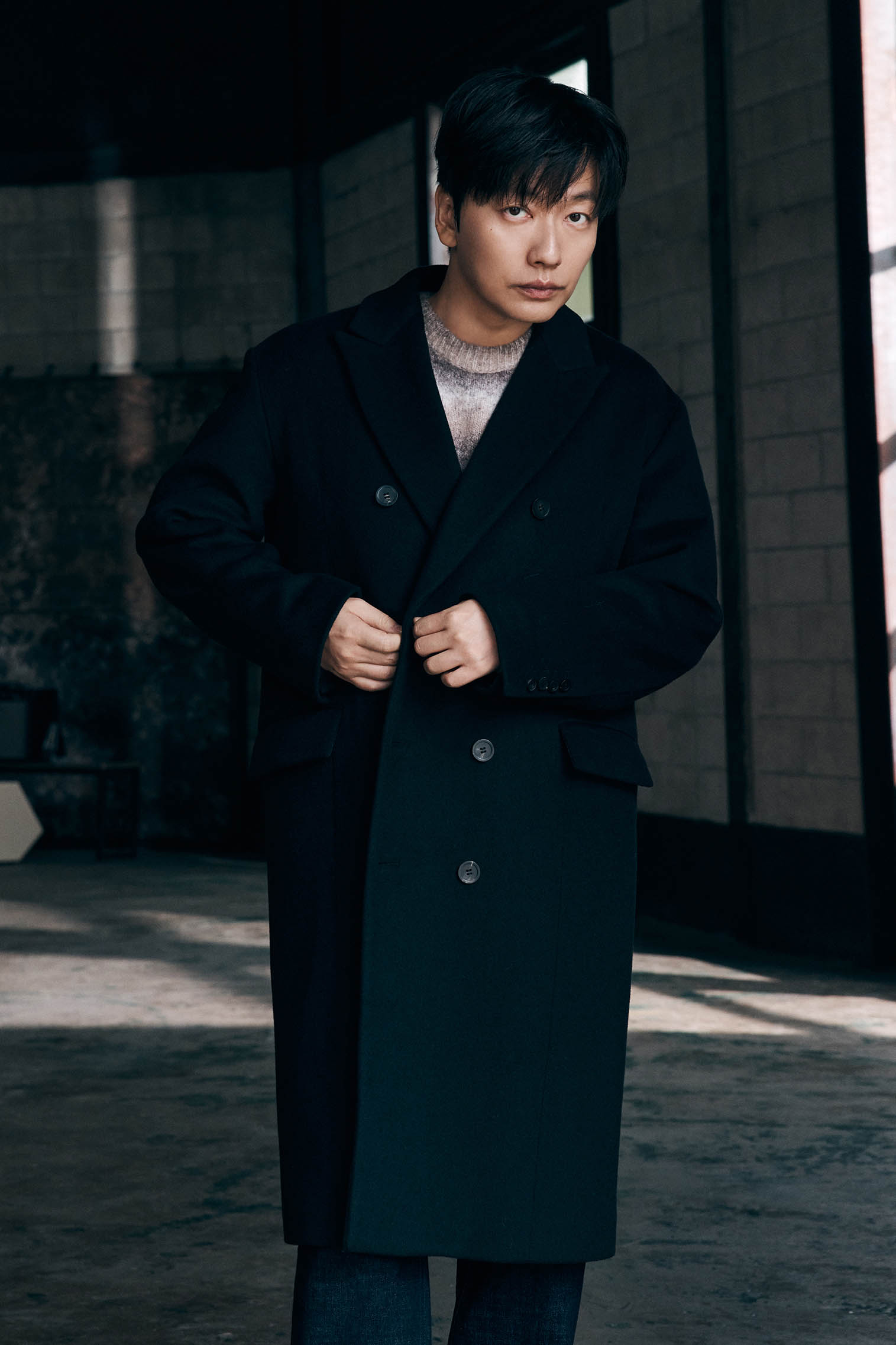 -S사이즈 코트는 어깨 마꾸라지 작업으로 자연스러운 드롭숄더 실루엣을 연출