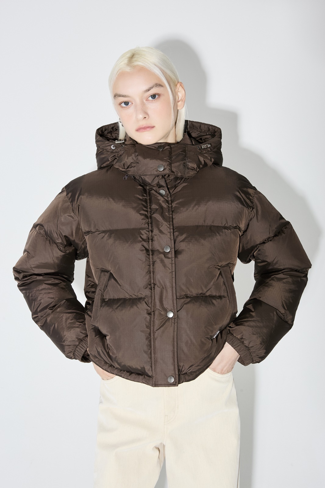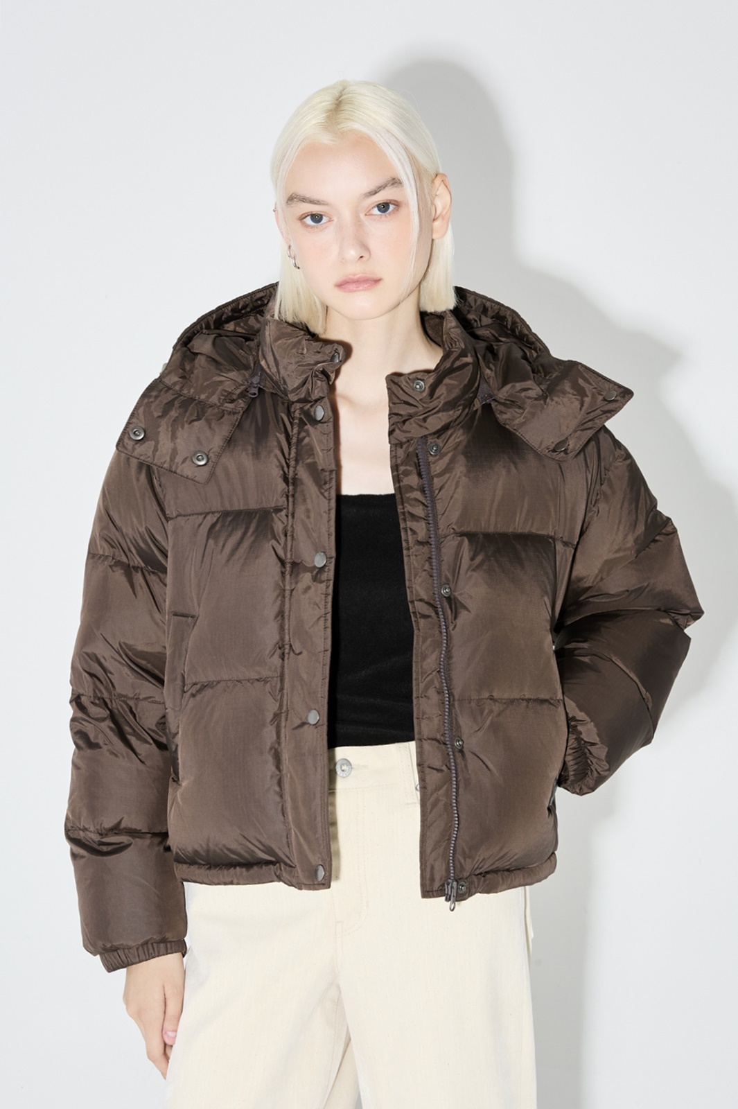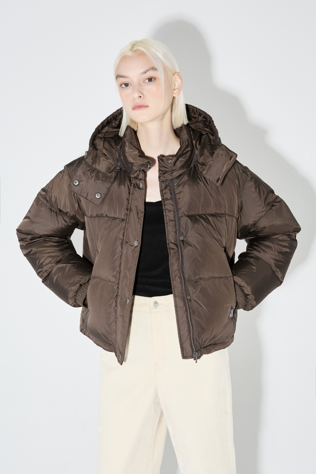 *다양한 날씨와 상황에 맞게 조절할 수 있어 실용적이며, 스타일리시한 디자인으로 다양한 코디에 활용할 수 있는 유광과 무광의 대비가 특징인 후드 탈부착 숏다운 점퍼